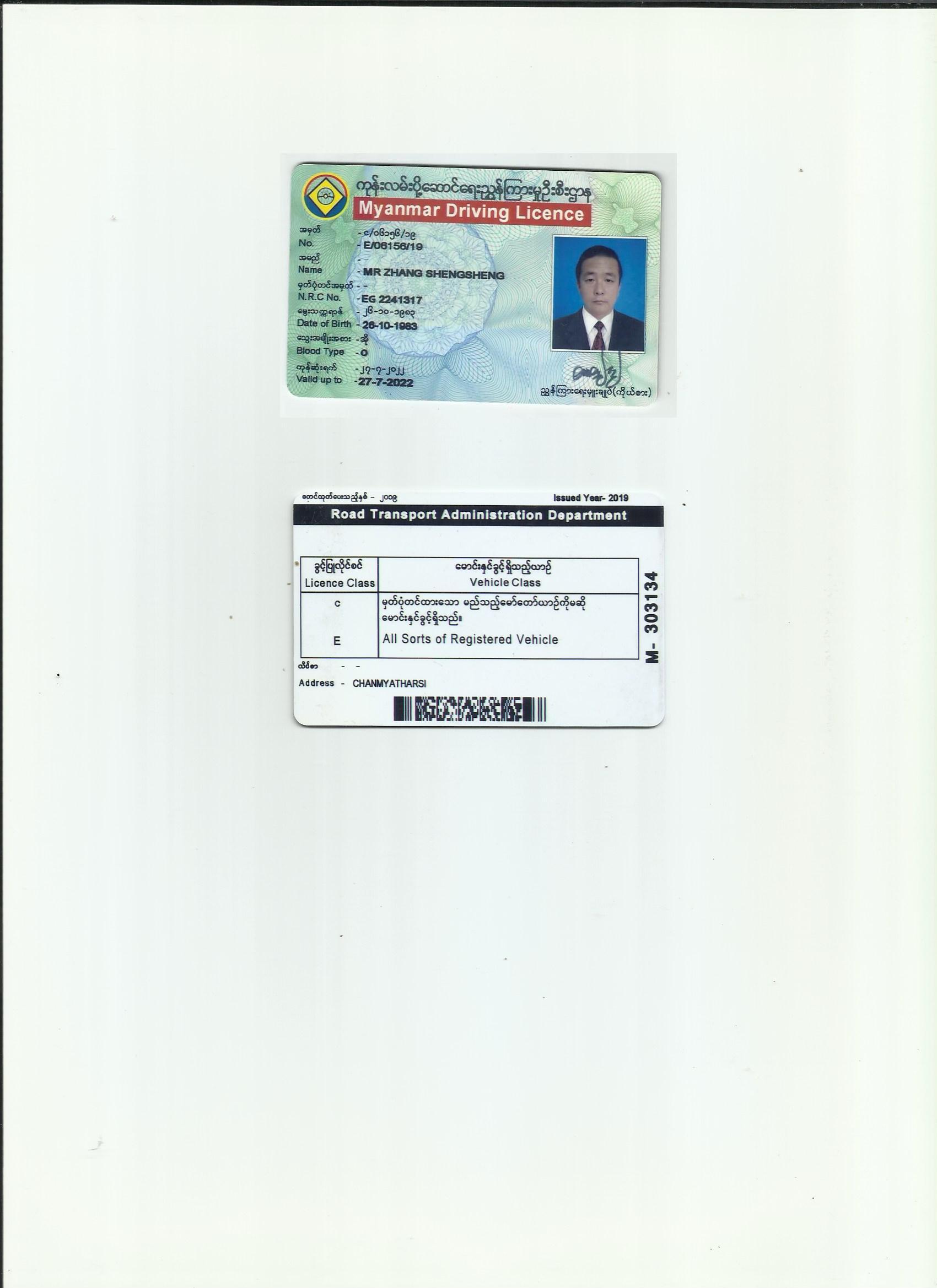 咸陽駕照翻譯公司 咸陽車管所指定翻譯公司 緬甸駕照翻譯模版