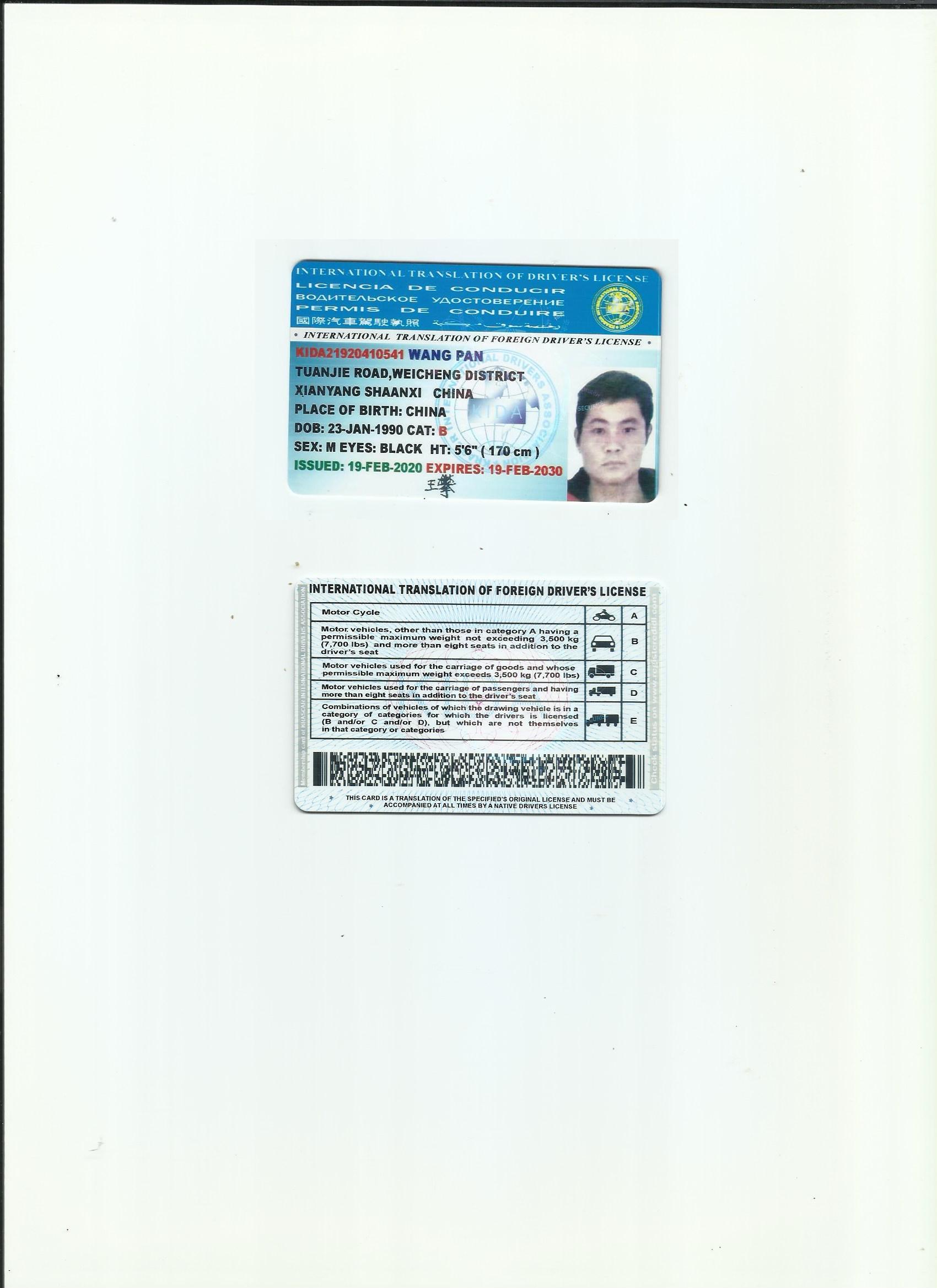 咸陽駕照翻譯公司 咸陽車管所指定翻譯公司 國際駕照翻譯模版