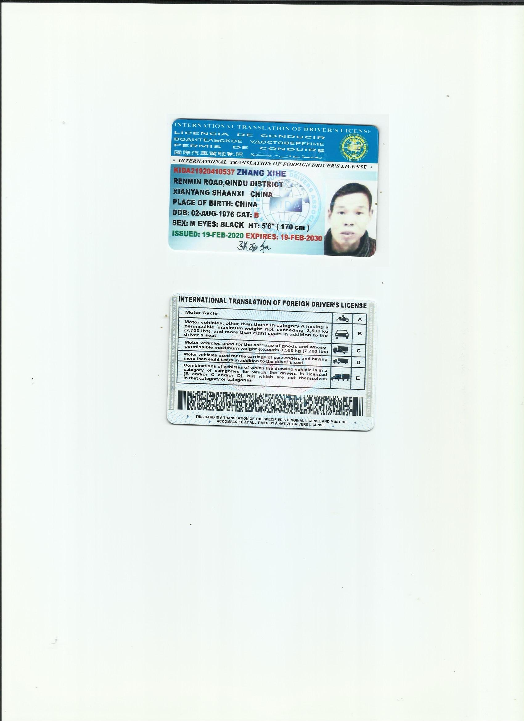 咸陽駕照翻譯公司 咸陽車管所指定翻譯公司 國際駕照翻譯模版