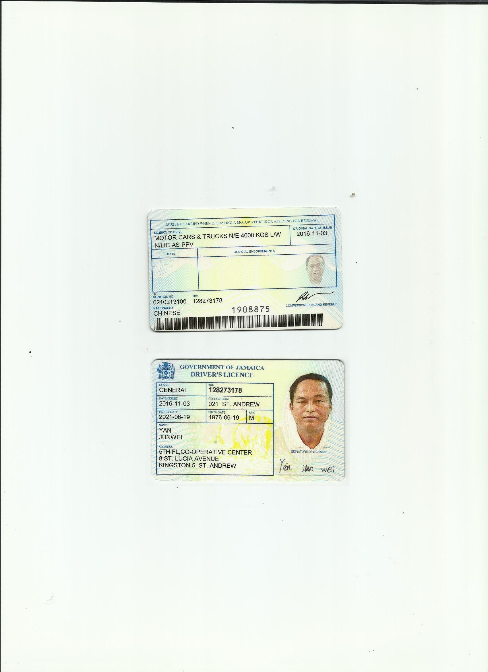 咸陽駕照翻譯公司 咸陽車管所指定翻譯公司 牙買加駕照翻譯模版