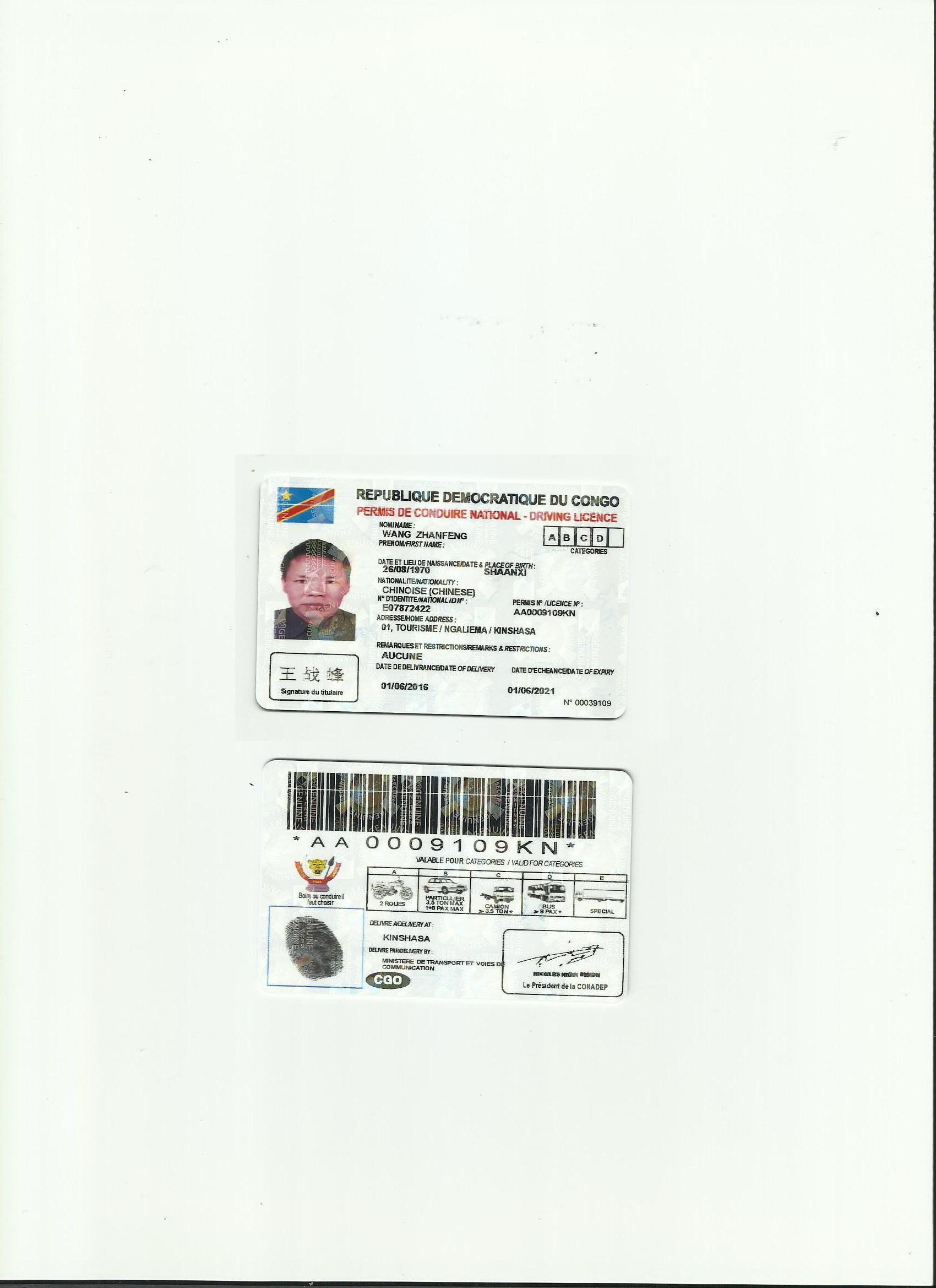 咸陽市車管所認可翻譯中心-剛果金駕照翻譯模版