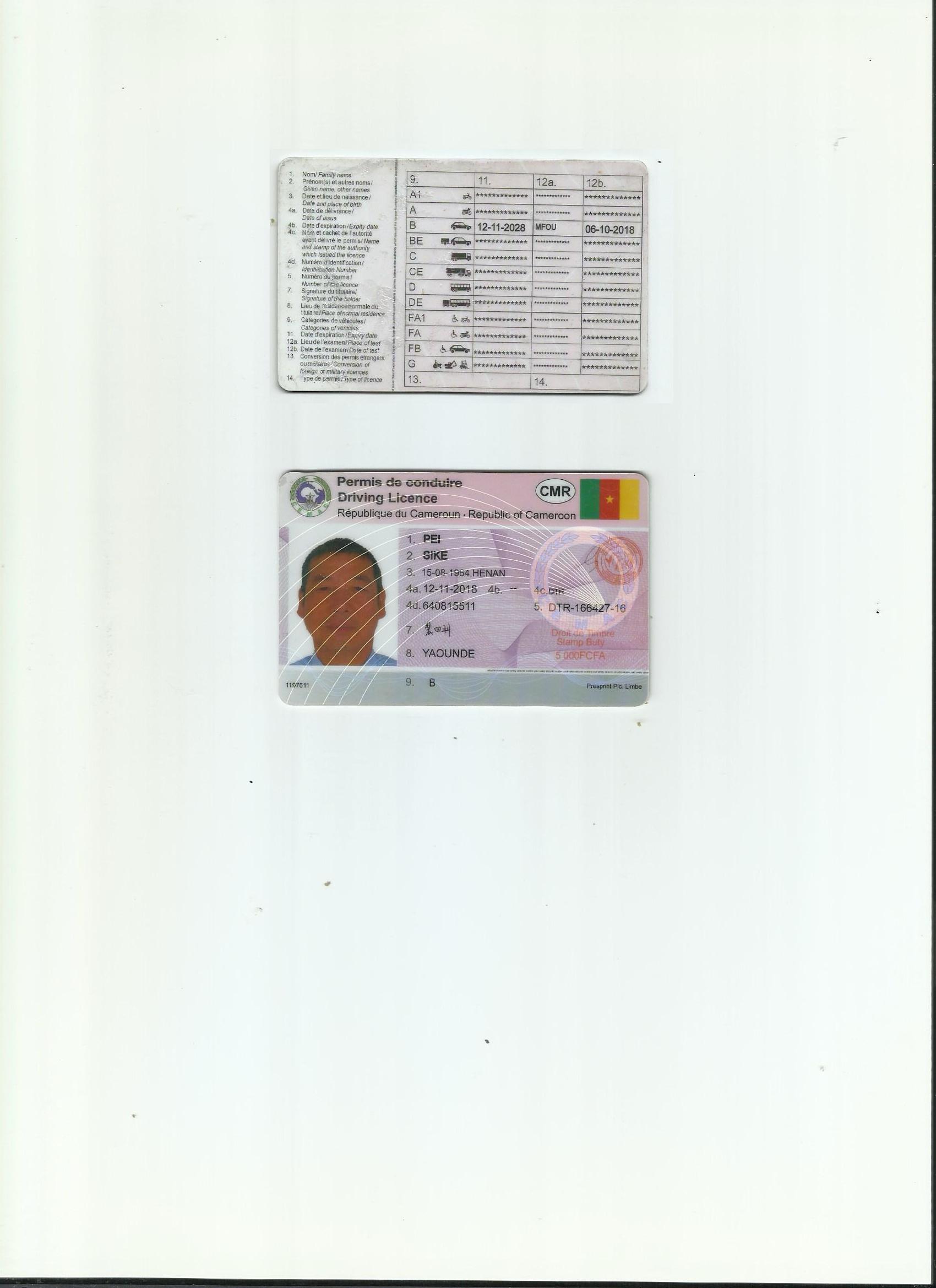 咸陽車管所認可翻譯機構 114查號臺注冊翻譯機構 喀麥隆駕照翻譯模版