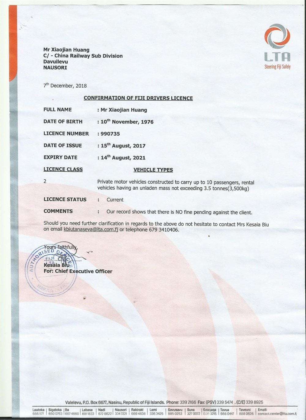 咸陽證件翻譯蓋章 成績單翻譯 戶口薄翻譯 駕照翻譯 斐濟駕照說明翻譯模版