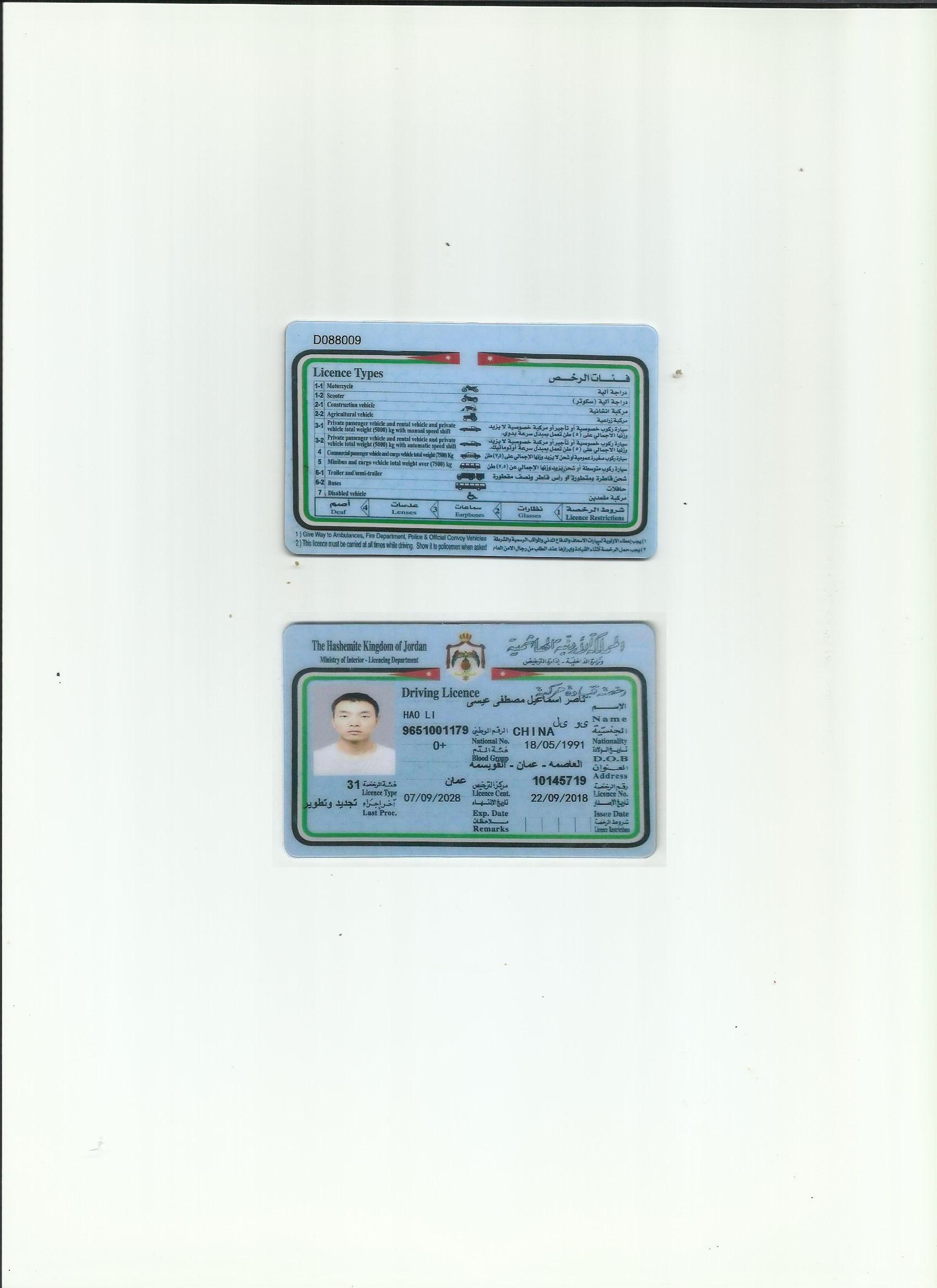 咸陽證件翻譯蓋章 成績單翻譯 戶口薄翻譯 駕照翻譯 約旦駕照翻譯模版
