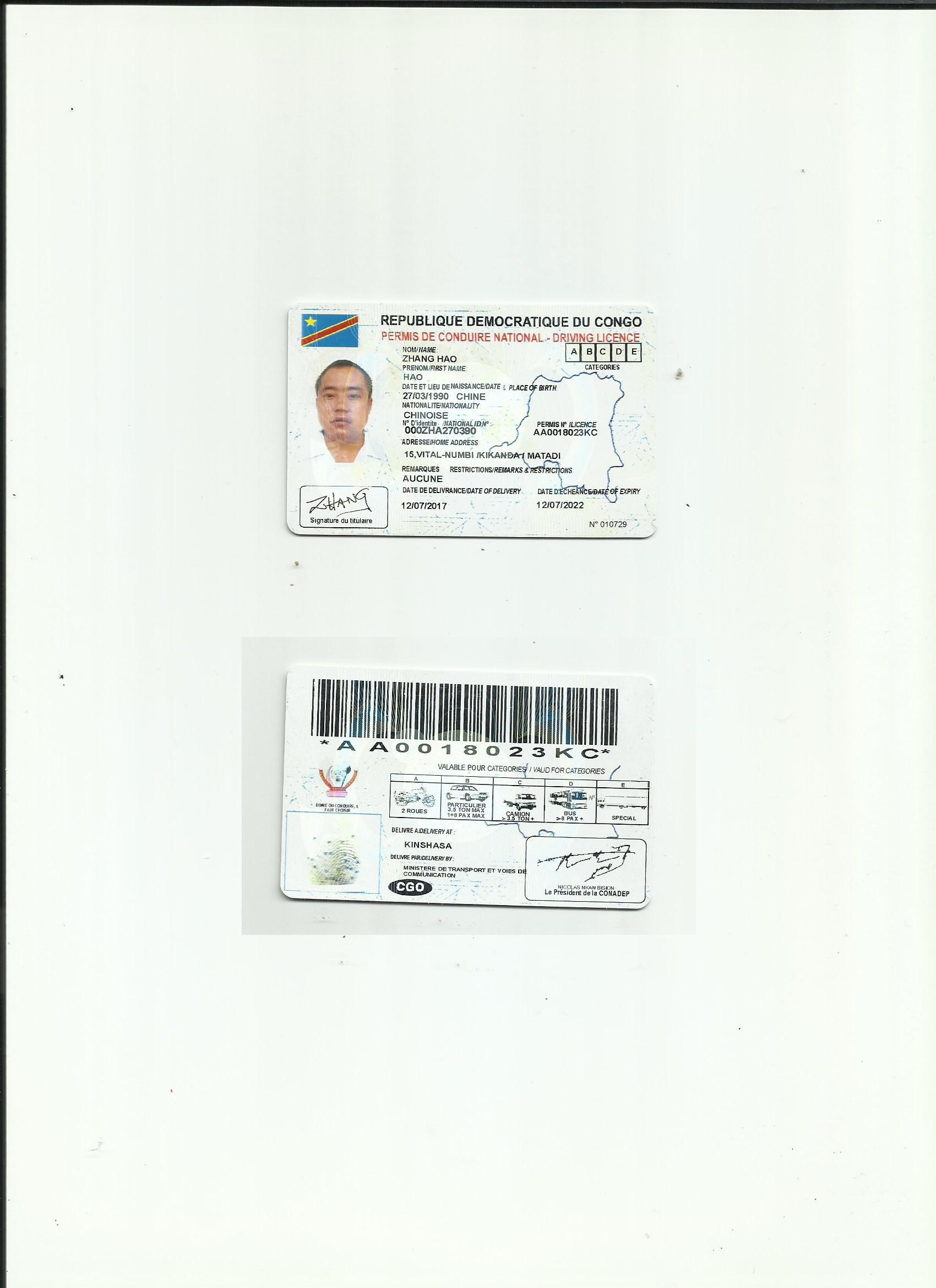 剛果金駕照翻譯模版 咸陽翻譯 政府指定咸陽翻譯 公安 車管所