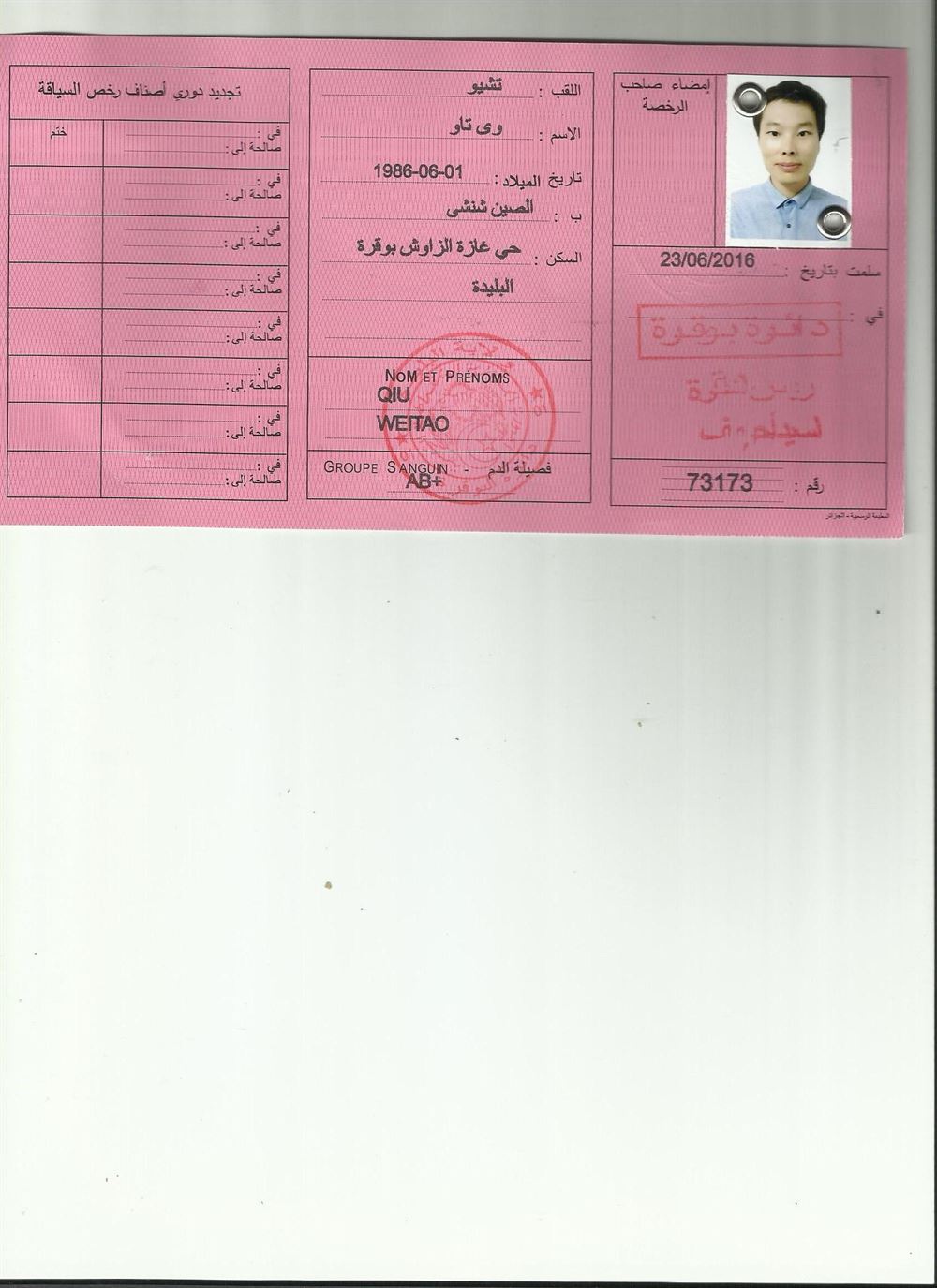 阿爾及利亞駕照翻譯模版-咸陽市車管所認可翻譯機構-西安翻譯公司