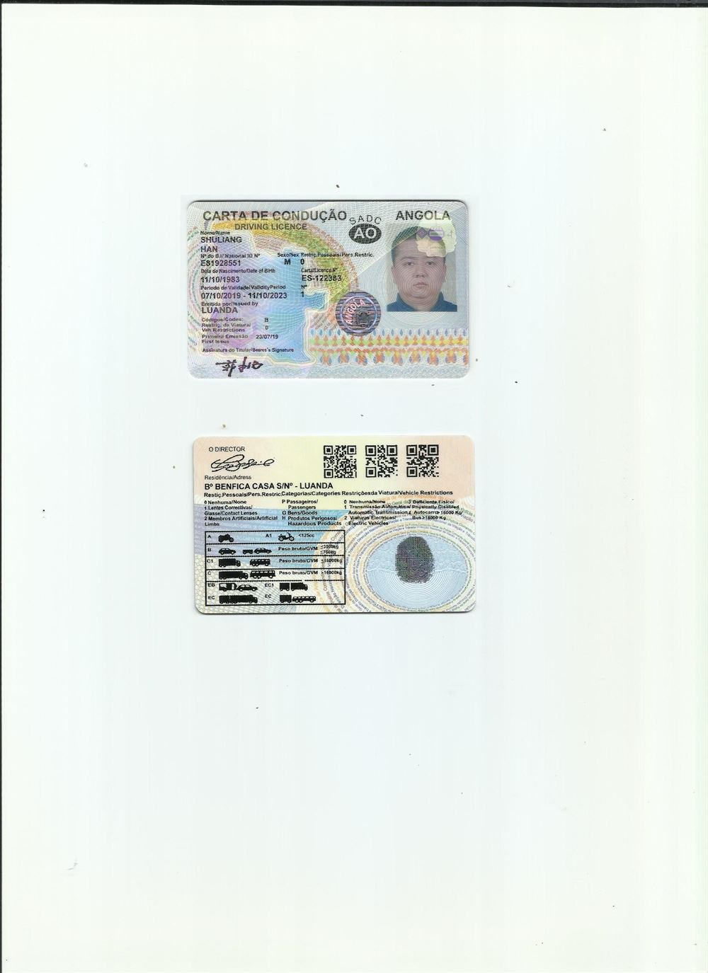 咸陽駕照翻譯公司 咸陽車管所指定翻譯公司 安哥拉駕照翻譯模版