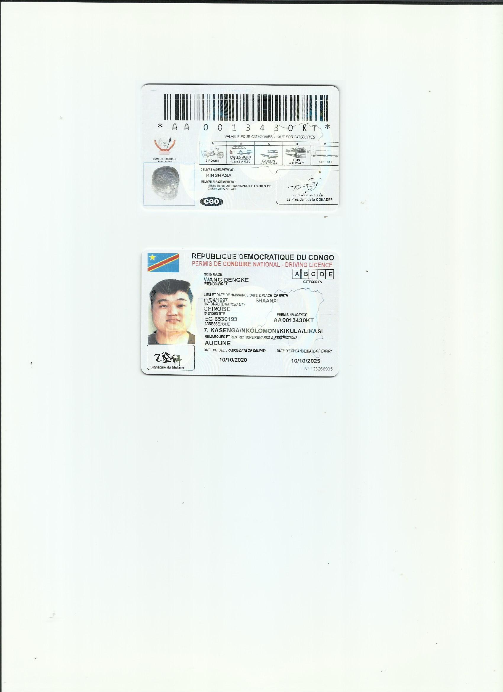 咸陽駕照翻譯公司 咸陽車管所指定翻譯公司 剛果金駕照翻譯模版