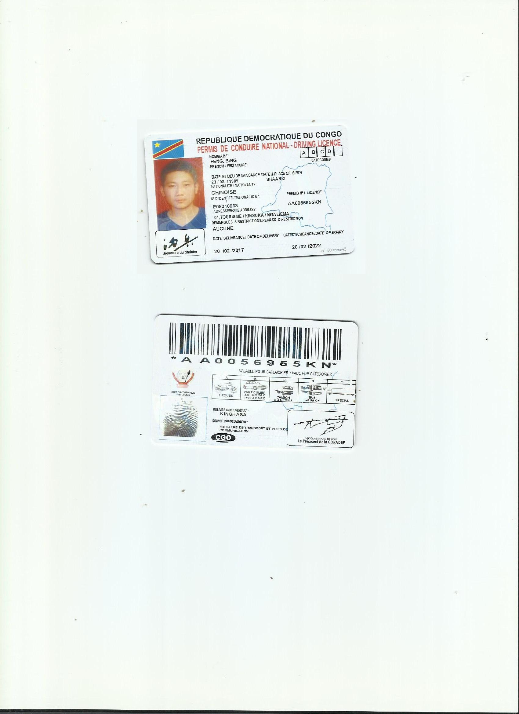 咸陽駕照翻譯公司 咸陽車管所指定翻譯公司 剛果金駕照翻譯模版