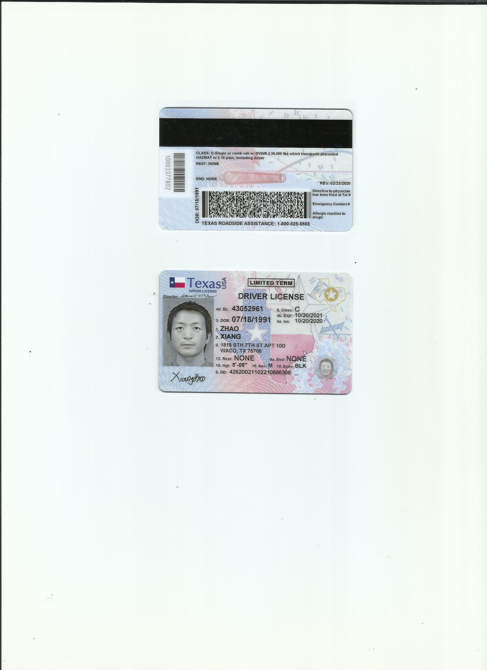 咸陽駕照翻譯公司 咸陽車管所指定翻譯公司 美國德州駕照翻譯模版