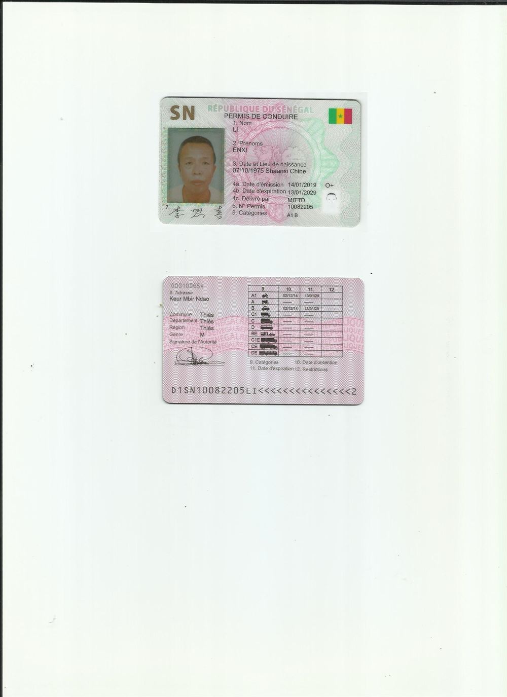 咸陽駕照翻譯公司 咸陽車管所指定翻譯公司 塞內加爾駕照翻譯模版
