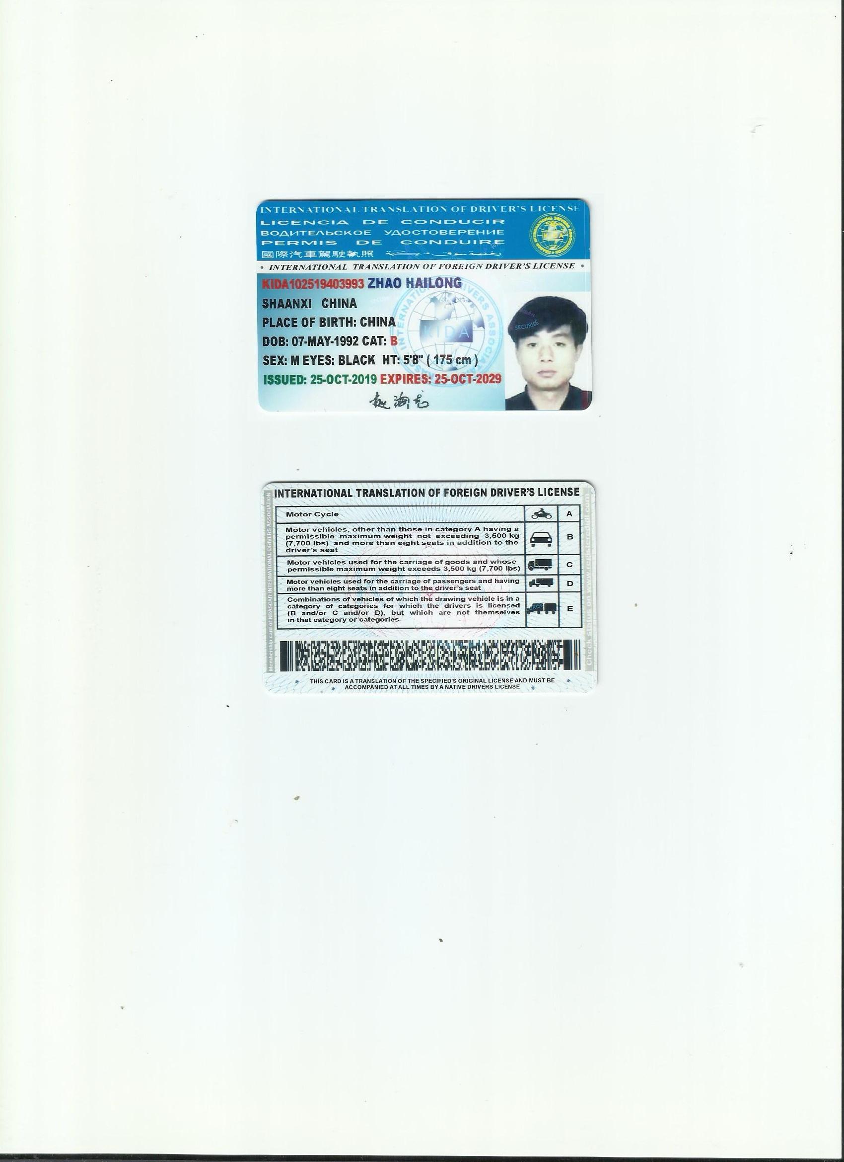 咸陽駕照翻譯公司 咸陽車管所指定翻譯公司 國際駕照翻譯模版