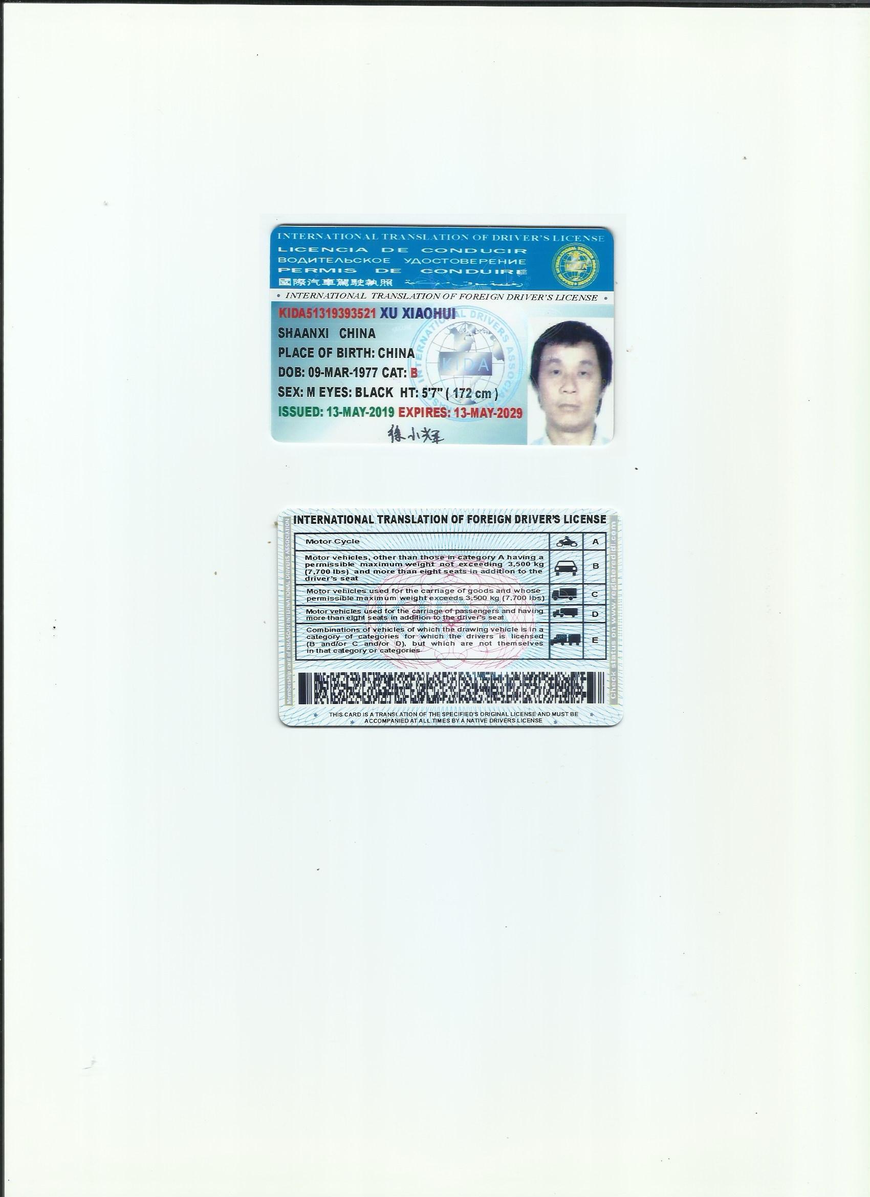 咸陽駕照翻譯公司 咸陽車管所指定翻譯公司 國際駕照翻譯模版