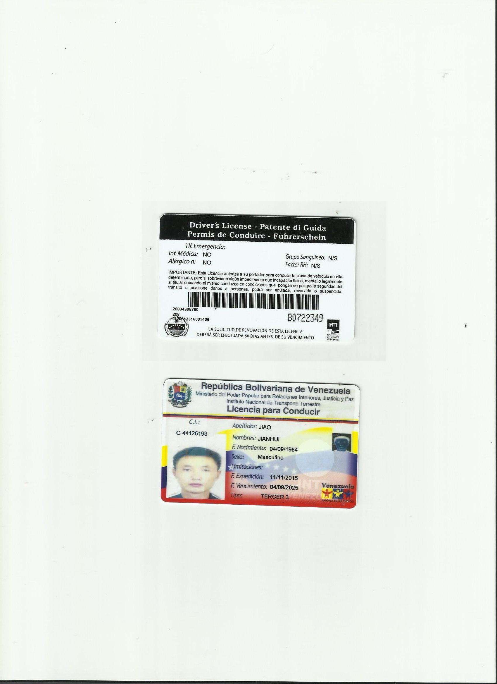 駕照咸陽翻譯-委內瑞拉駕照翻譯模版