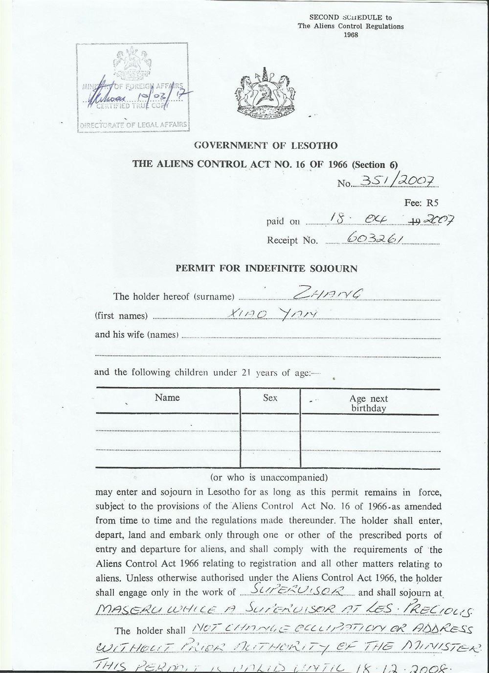 外國人管制證明翻譯-萊索托證件翻譯-各類證件翻譯-隨到隨譯