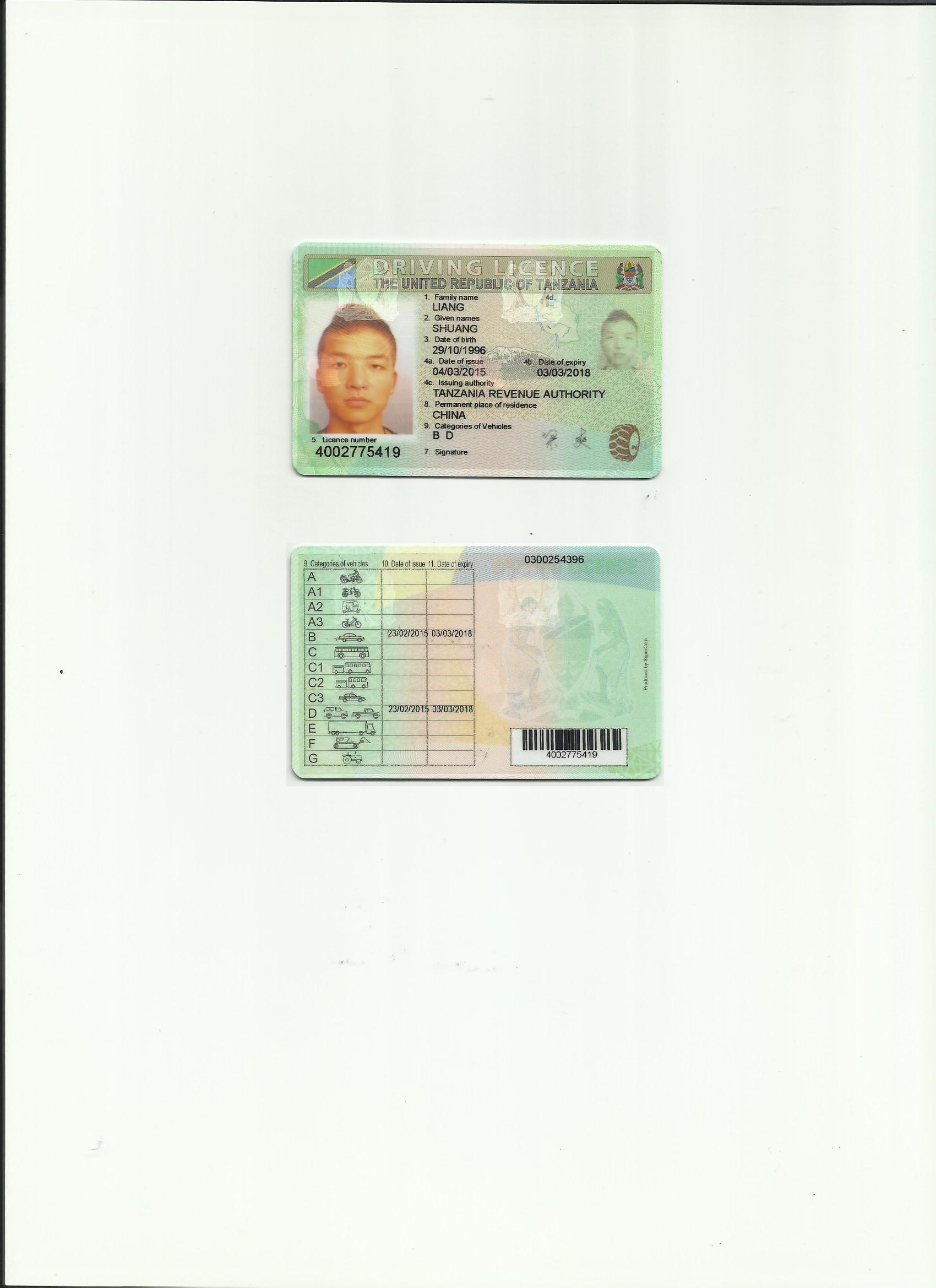 坦桑尼亞駕照翻譯模版-咸陽車管所認可翻譯機構