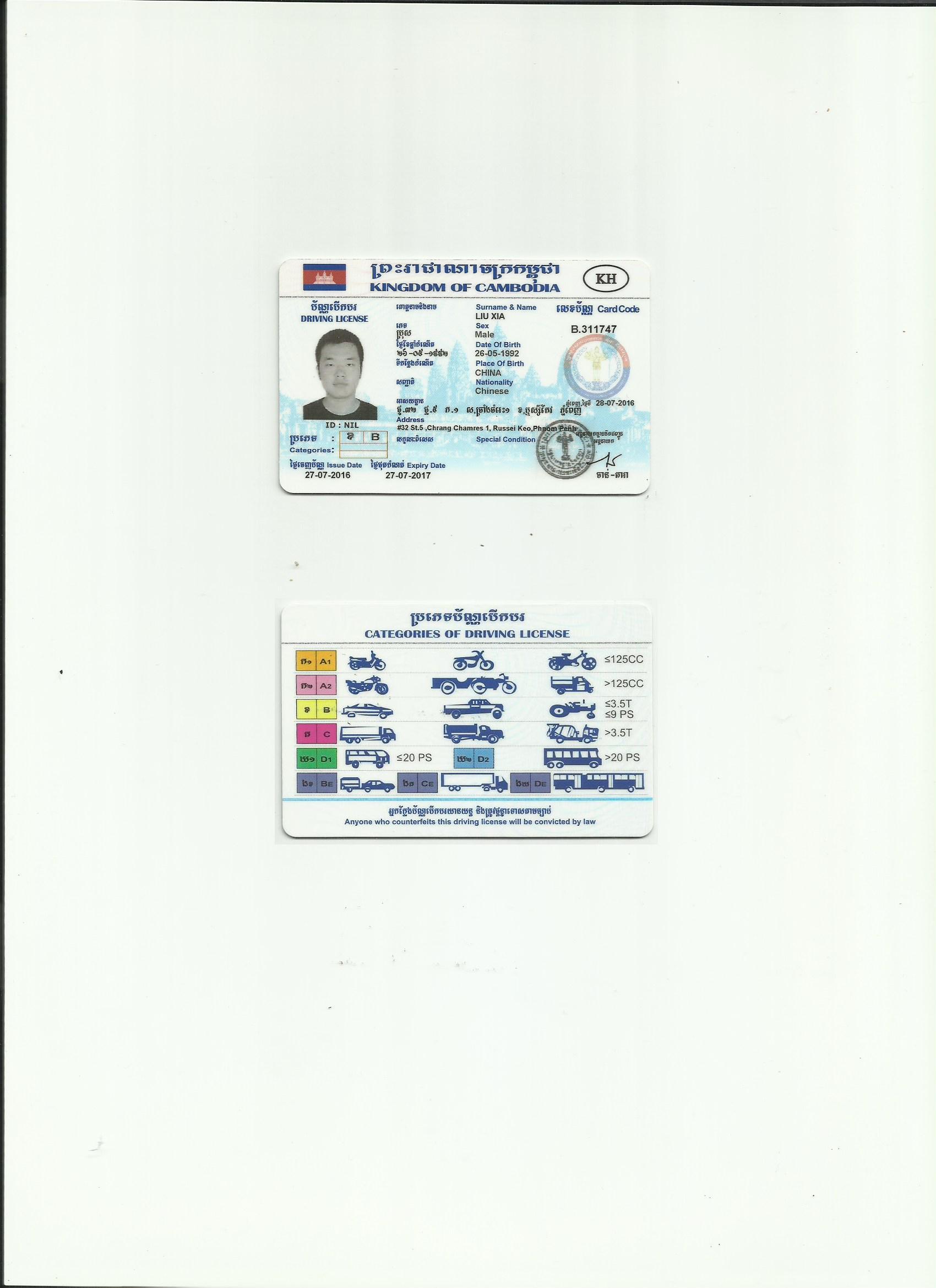 柬埔寨駕照翻譯模版-咸陽市-西安市翻譯公司-車管所認可翻譯機構