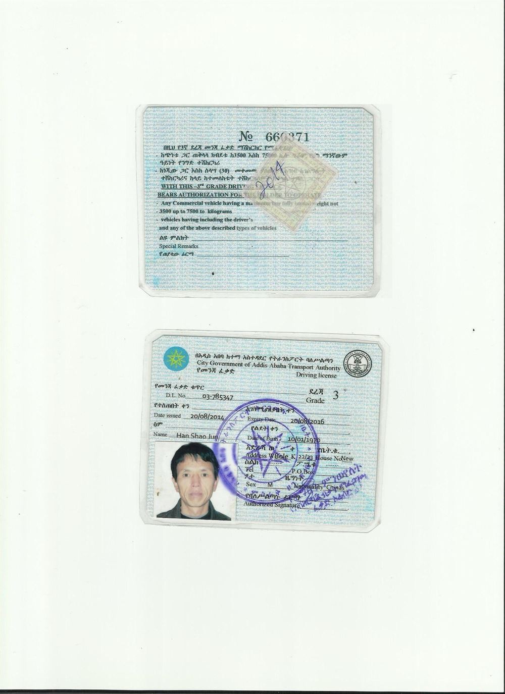 咸陽車管所認可翻譯機構-埃塞駕照翻譯模版