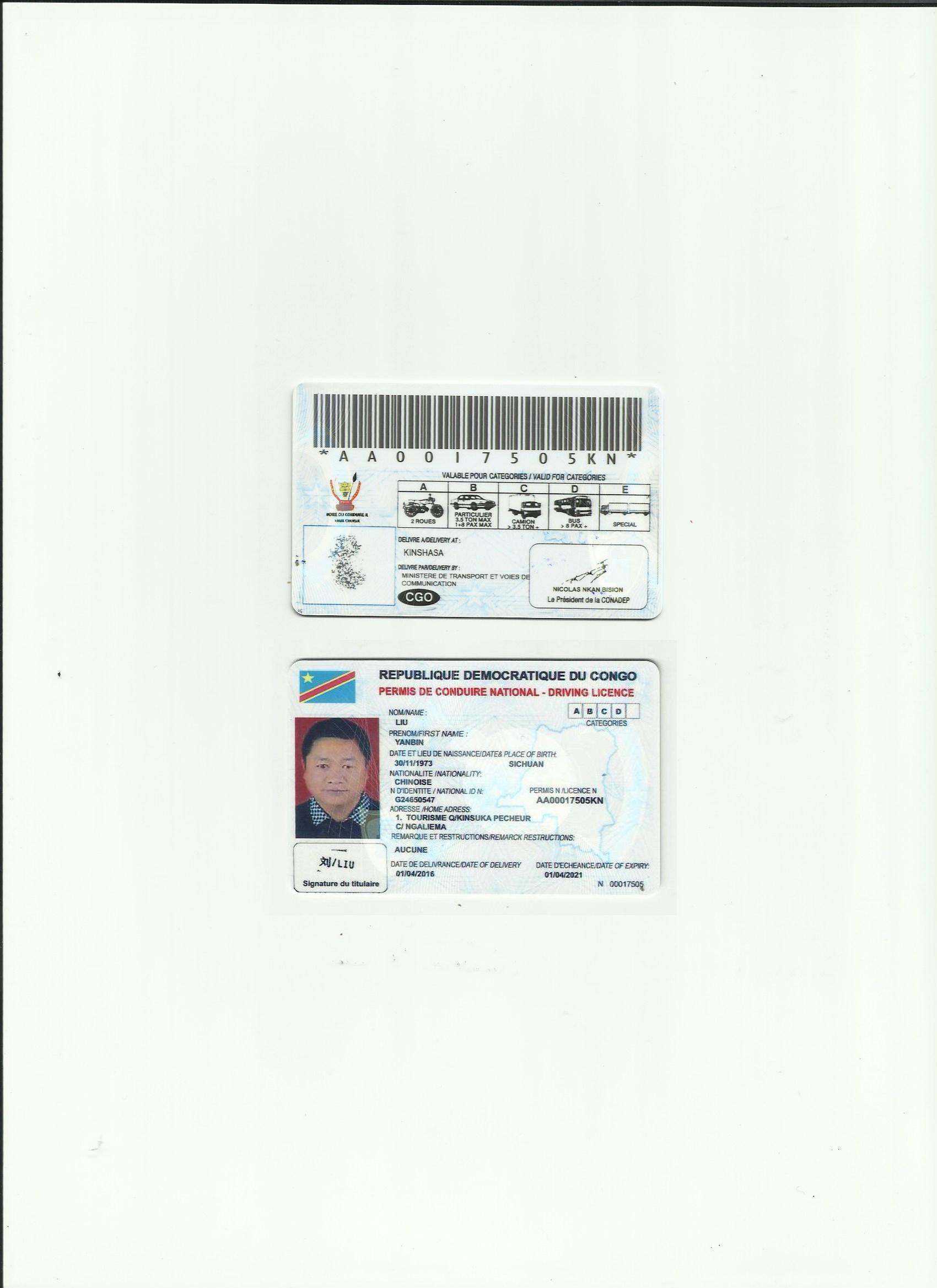 咸陽市車管所認可翻譯機構-剛果金駕照翻譯模版