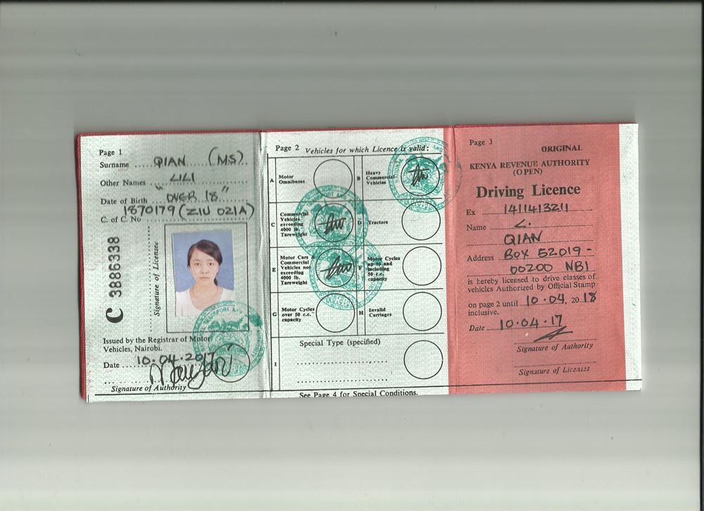 肯尼亞駕照翻譯模版 咸陽車管所認可翻譯機構 政府指定咸陽翻譯 陜西阿博爾翻譯服務有限公司