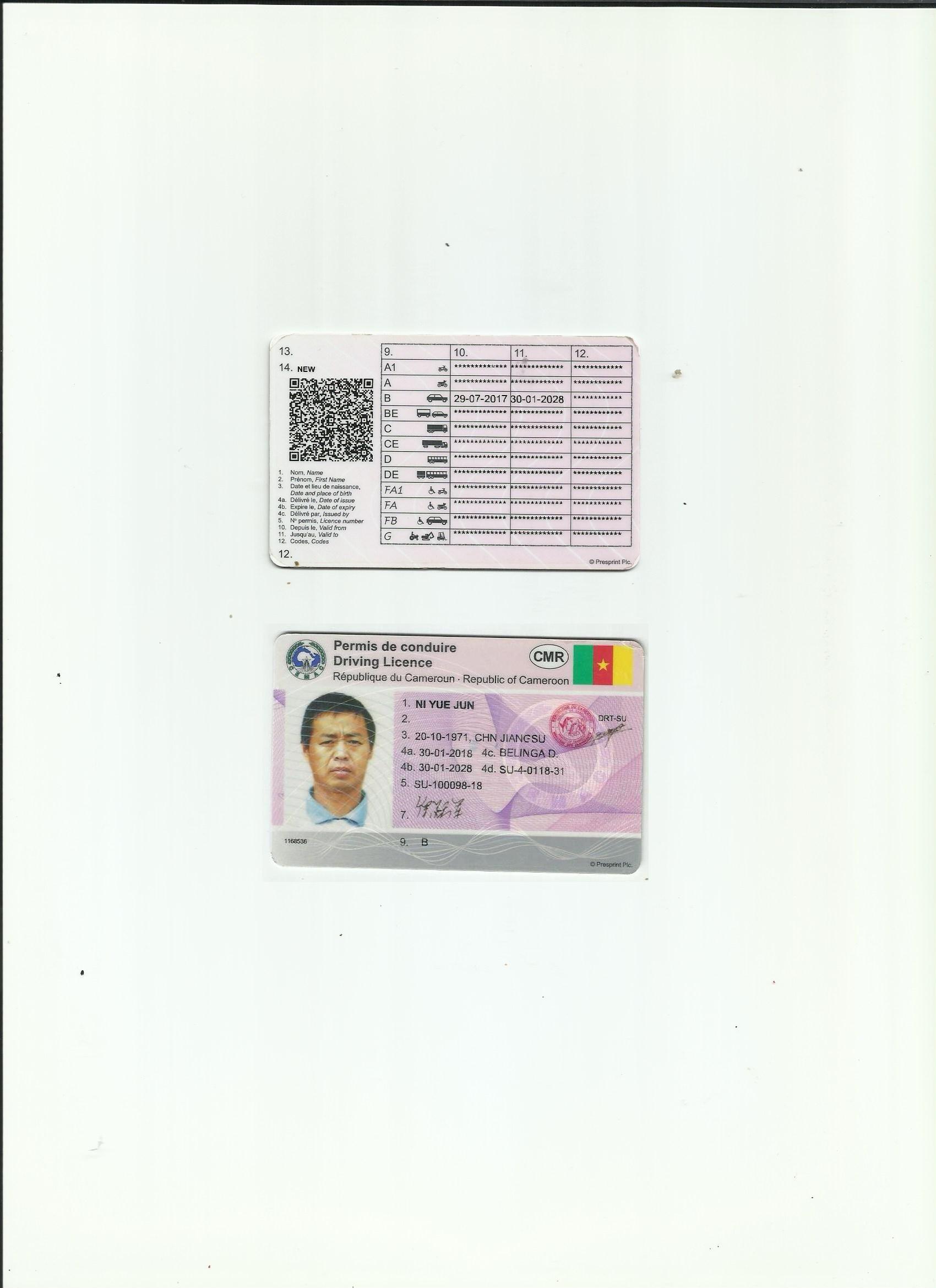 咸陽專業國外駕照翻譯公司 方便國內駕照換證 資質備案的駕照翻譯 喀麥隆駕照翻譯模版