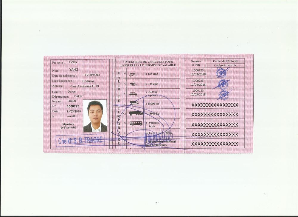 咸陽專業國外駕照翻譯公司 方便國內駕照換證 資質備案的駕照翻譯 非洲塞內加爾駕照翻譯