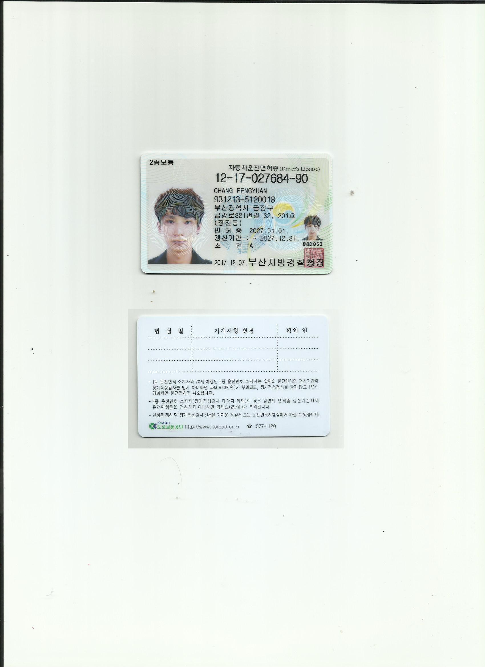 咸陽專業國外駕照翻譯公司-資質備案的駕照翻譯-咸陽車管所認可翻譯機構-韓國駕照翻譯模版