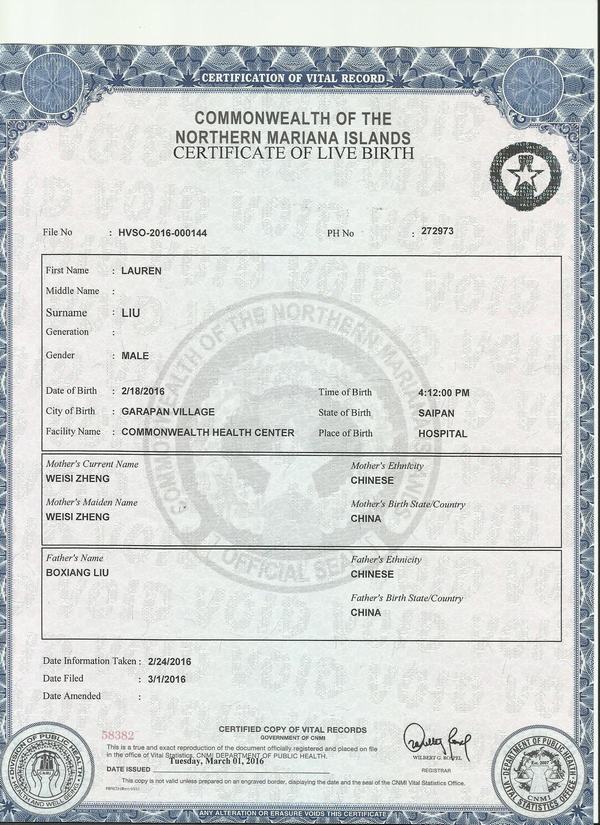 美國-北馬里亞納群島出生證明翻譯-咸陽公證處認可翻譯機構