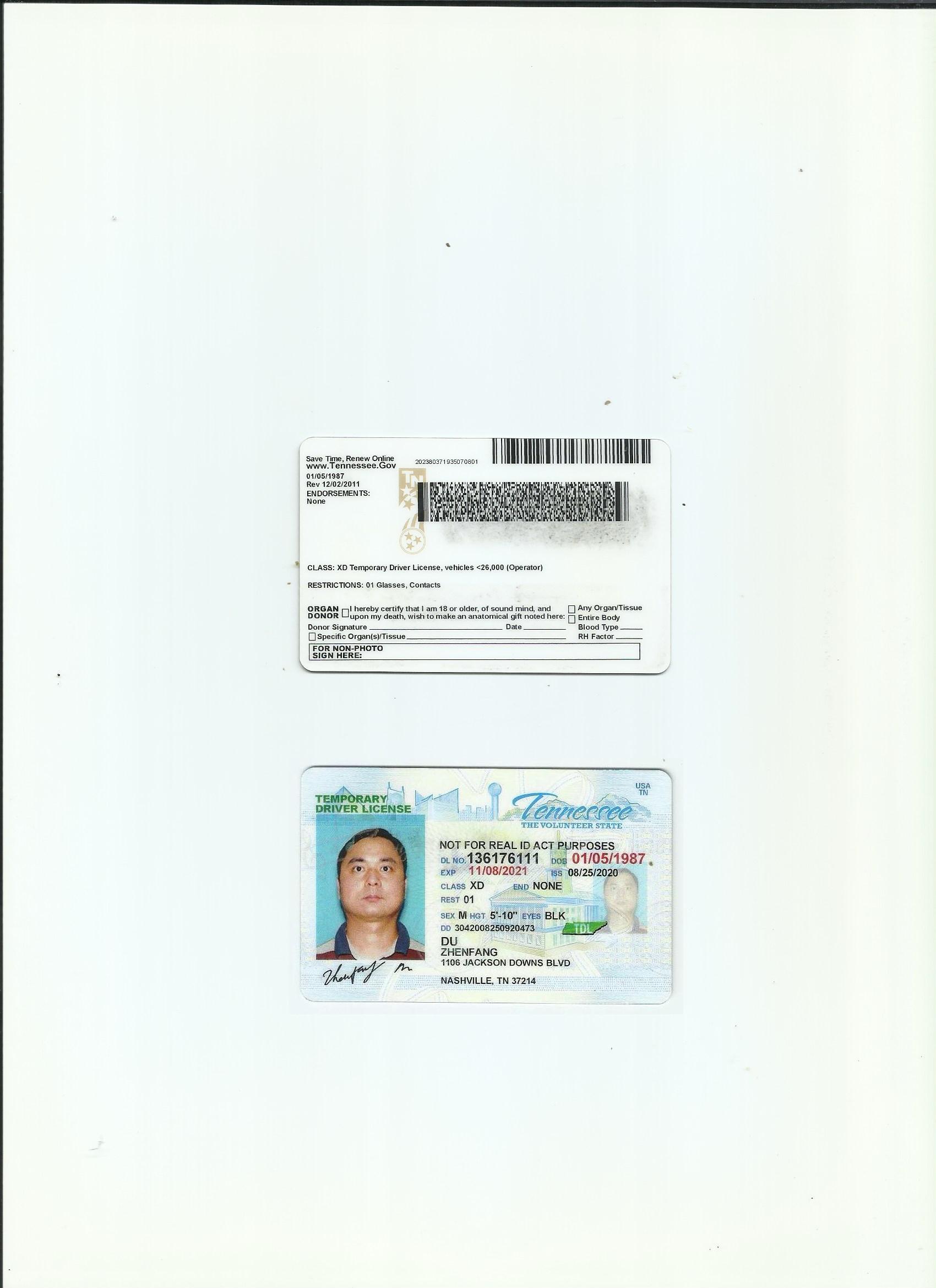 咸陽證件翻譯蓋章 成績單翻譯 戶口薄翻譯 駕照翻譯 美國田納西州駕照翻譯模版