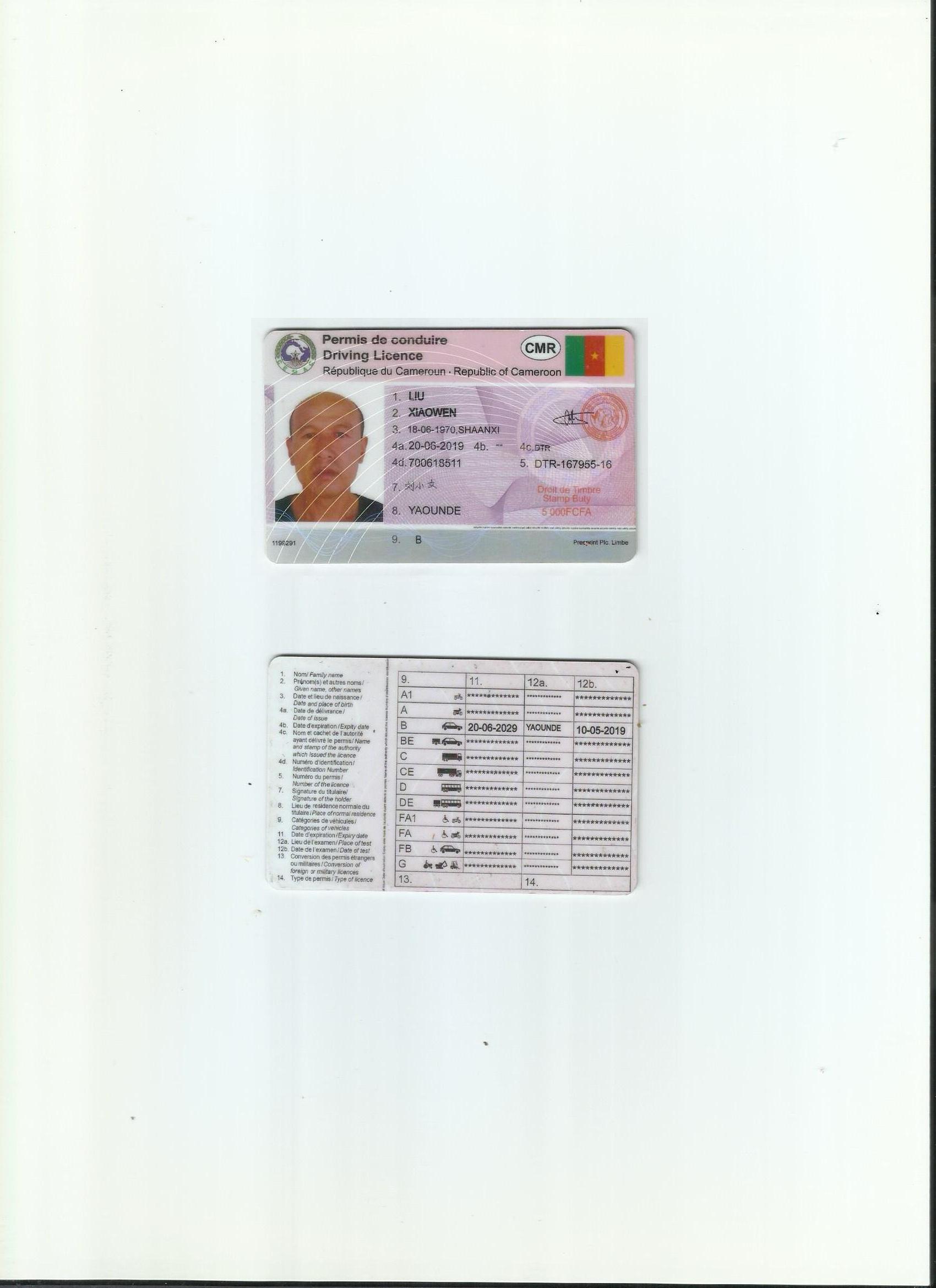 咸陽證件翻譯蓋章 成績單翻譯 戶口薄翻譯 駕照翻譯 喀麥隆駕照翻譯模版