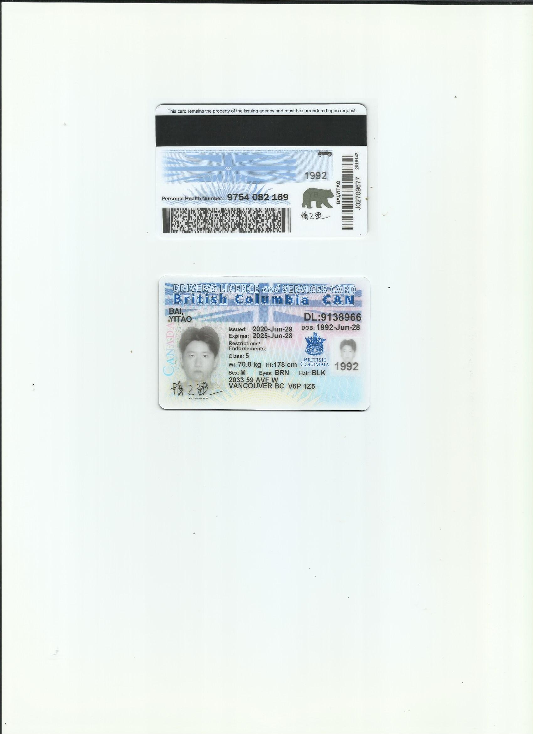咸陽證件翻譯蓋章 成績單翻譯 戶口薄翻譯 駕照翻譯 加拿大-不列顛哥倫比亞省駕照翻譯模版