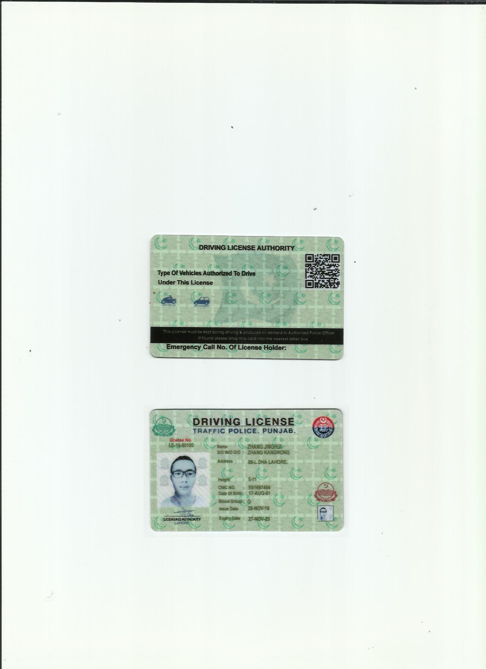 咸陽證件翻譯蓋章 成績單翻譯 戶口薄翻譯 駕照翻譯 巴基斯坦駕照翻譯模版-旁遮普省