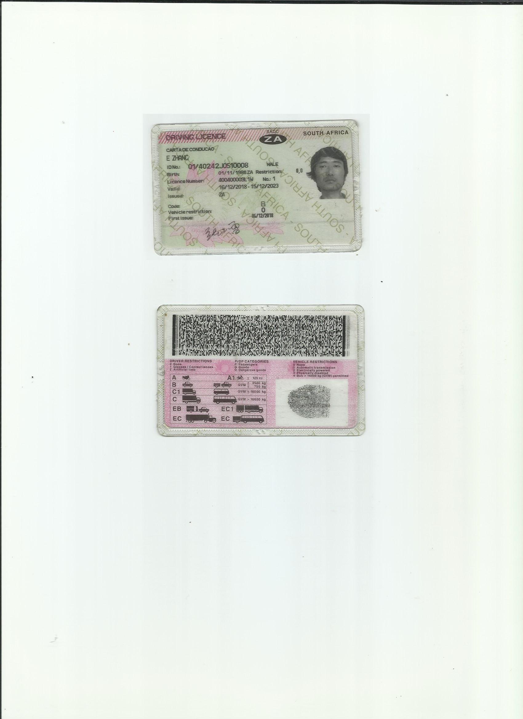 咸陽證件翻譯蓋章 成績單翻譯 戶口薄翻譯 駕照翻譯 南非駕照翻譯模版