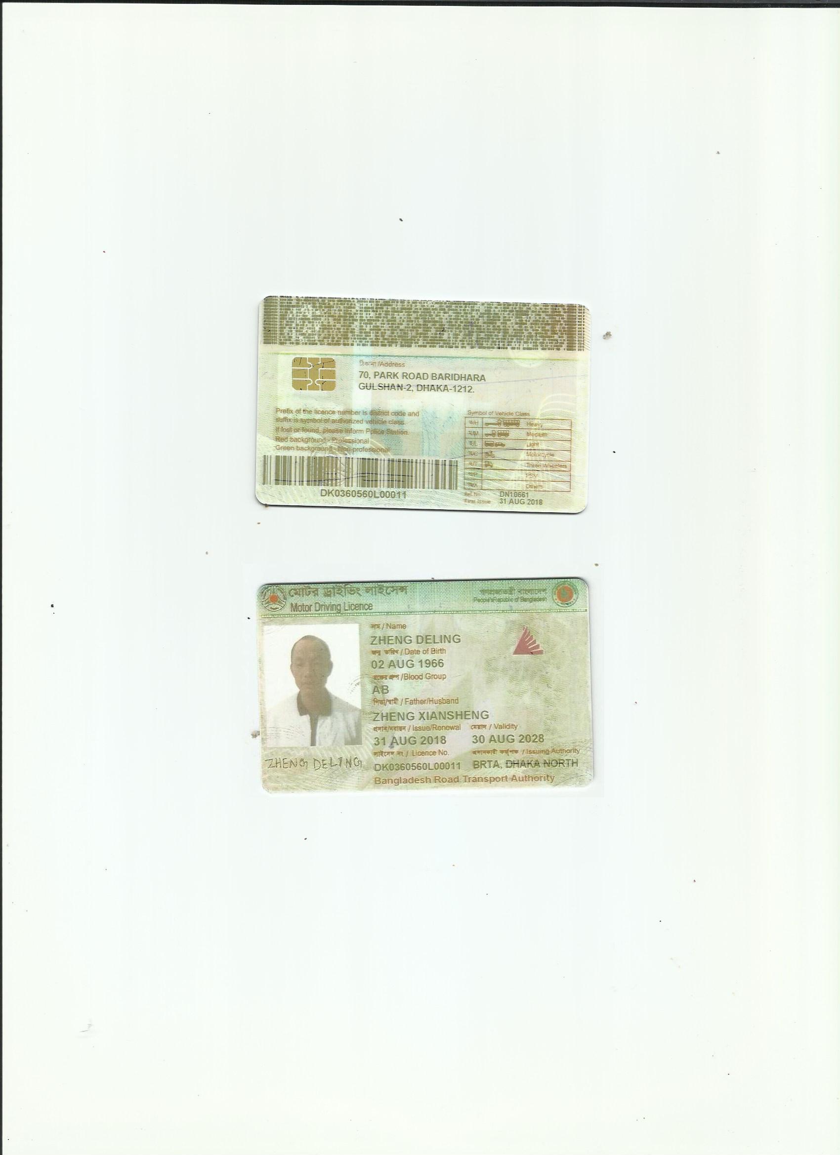 咸陽證件翻譯蓋章 成績單翻譯 戶口薄翻譯 駕照翻譯 孟加拉國駕照翻譯模版