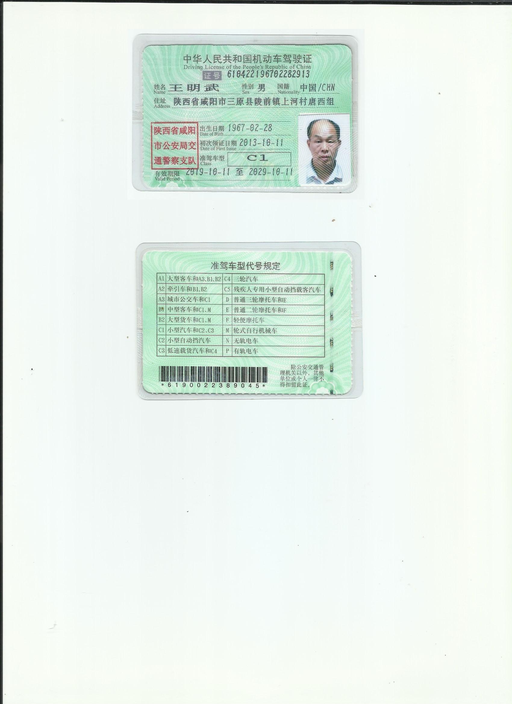 咸陽證件翻譯蓋章 成績單翻譯 戶口薄翻譯 駕照翻譯 中國駕照翻譯模版