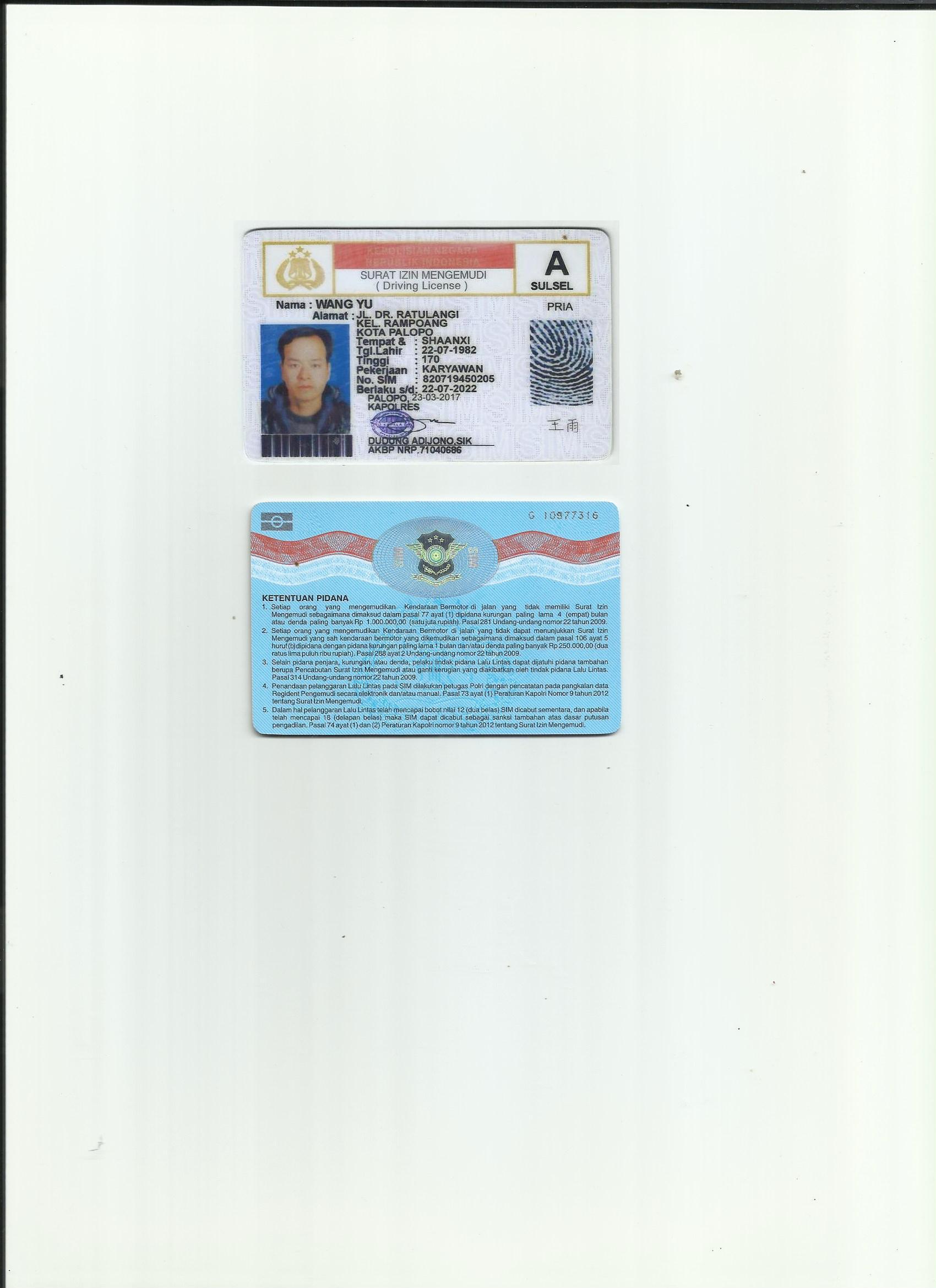 咸陽證件翻譯蓋章 成績單翻譯 戶口薄翻譯 駕照翻譯 印尼駕照翻譯模版