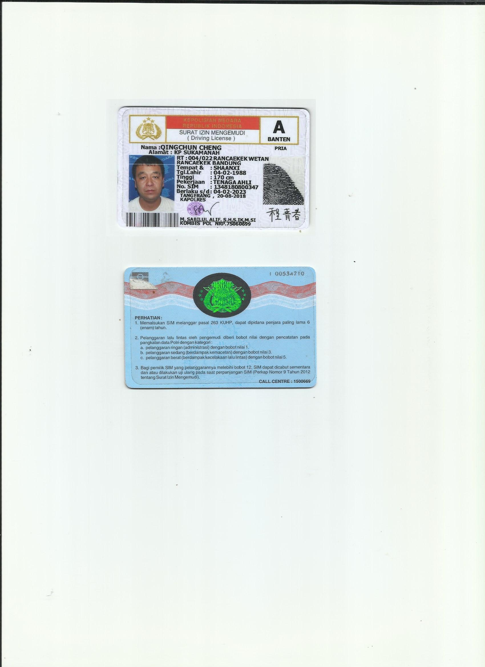 咸陽證件翻譯蓋章 成績單翻譯 戶口薄翻譯 駕照翻譯 印尼駕照翻譯模版