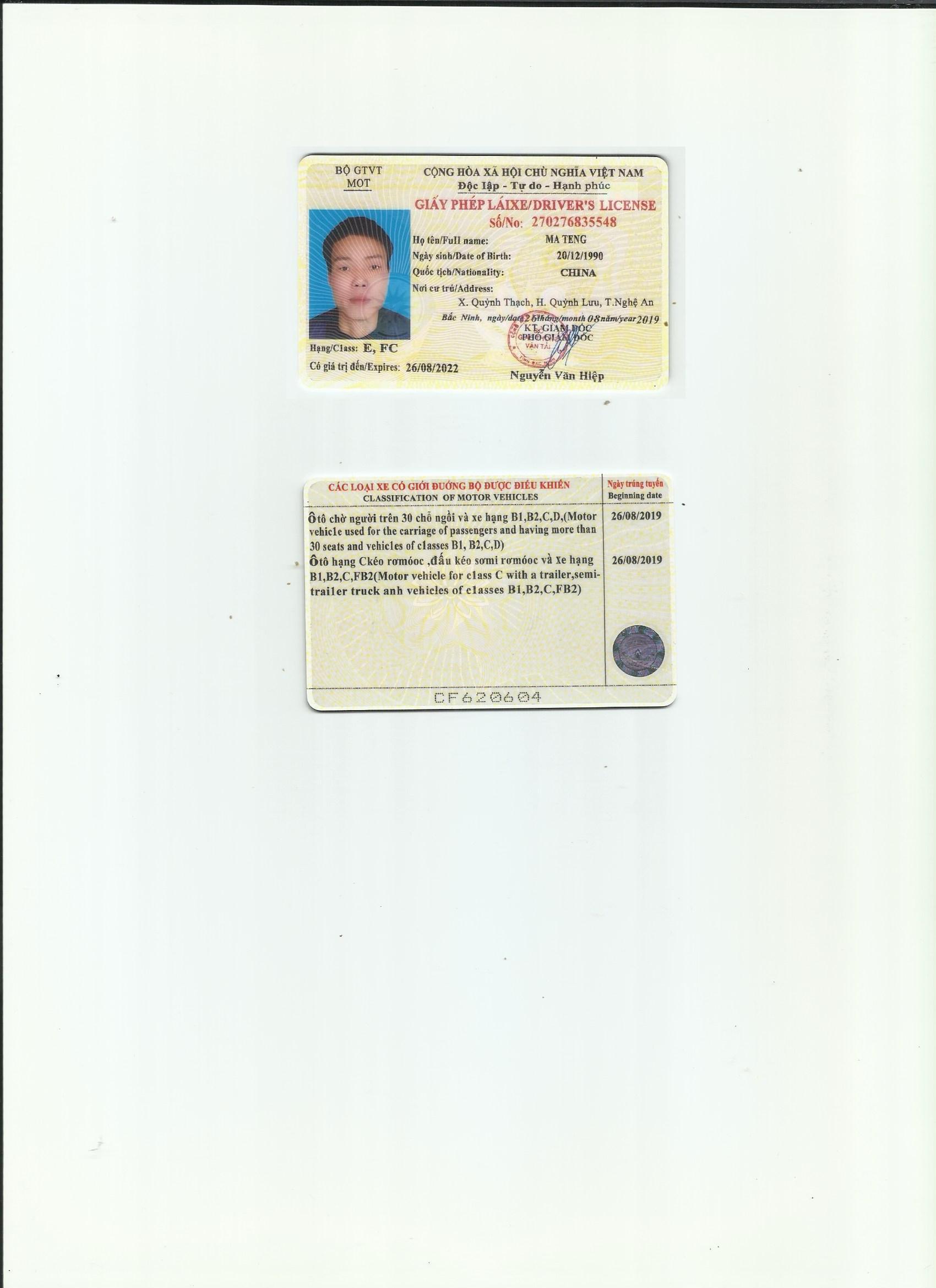 咸陽證件翻譯蓋章 成績單翻譯 戶口薄翻譯 駕照翻譯 越南駕照翻譯模版
