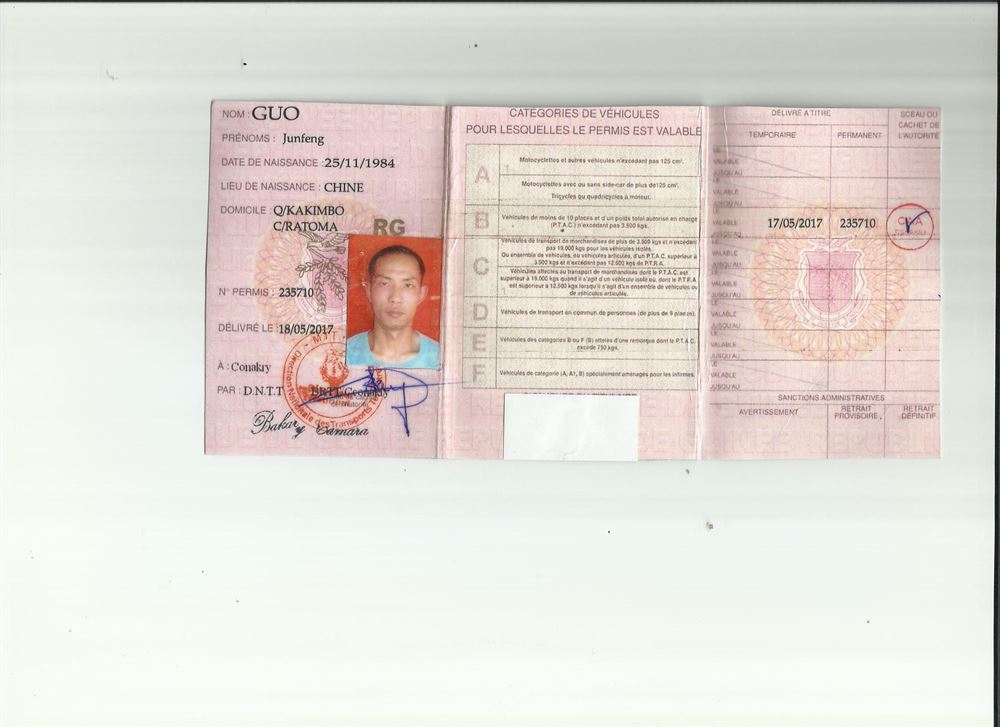 咸陽證件翻譯蓋章 成績單翻譯 戶口薄翻譯 駕照翻譯 幾內亞駕照翻譯模版