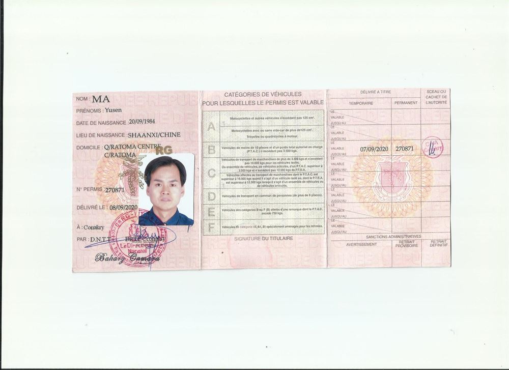 咸陽證件翻譯蓋章 成績單翻譯 戶口薄翻譯 駕照翻譯 幾內亞駕照翻譯模版