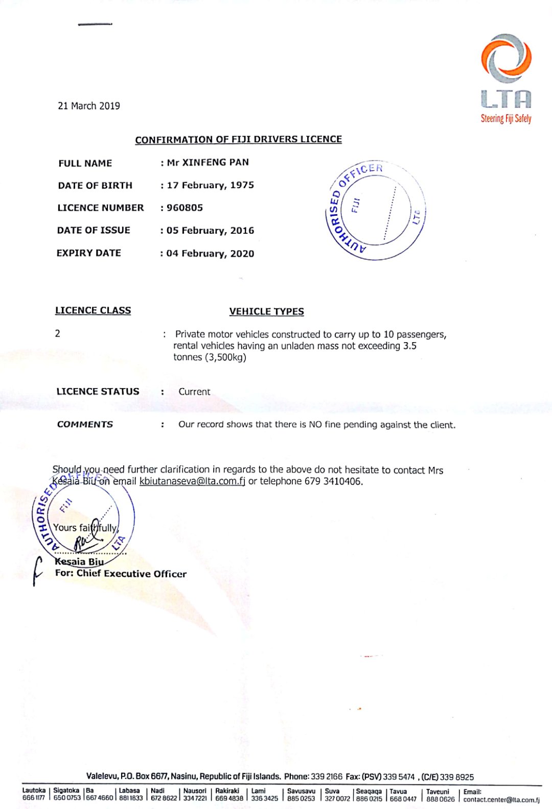 咸陽證件翻譯蓋章 成績單翻譯 戶口薄翻譯 駕照翻譯 斐濟駕照說明翻譯模版