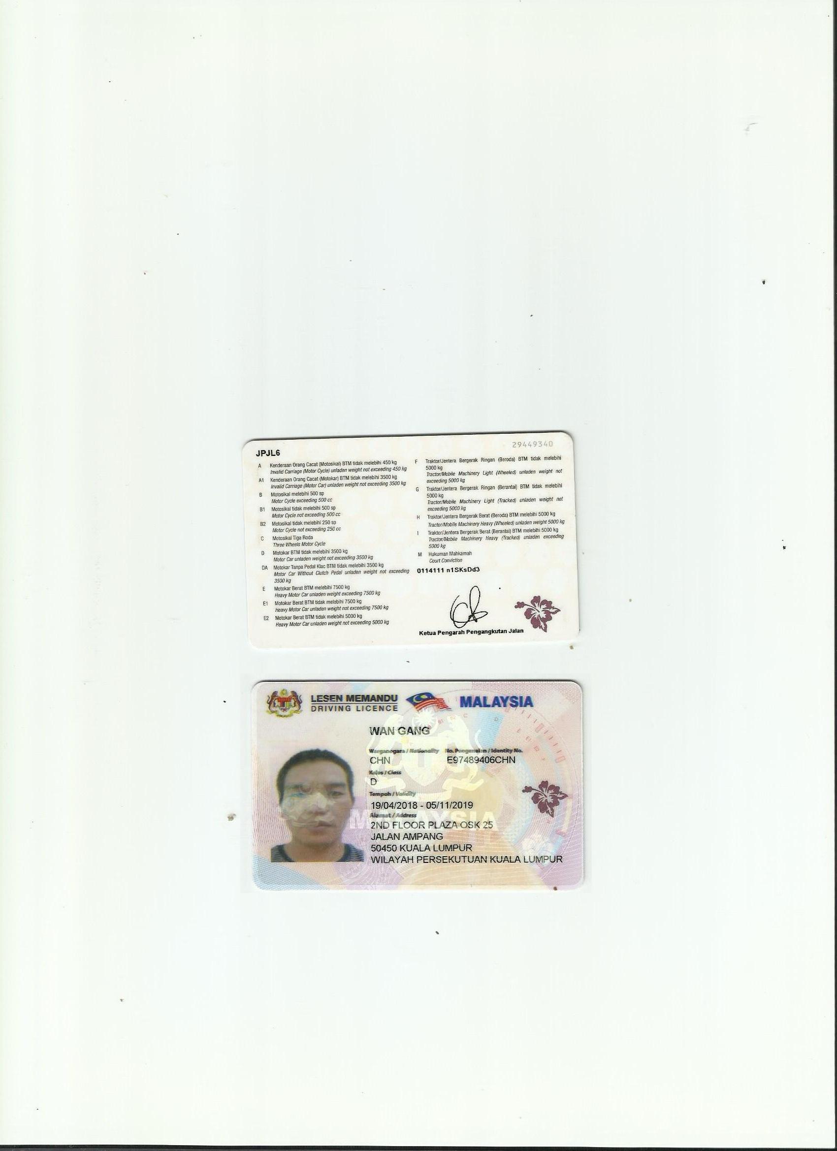 咸陽證件翻譯蓋章 成績單翻譯 戶口薄翻譯 駕照翻譯 馬來西亞駕照翻譯模版