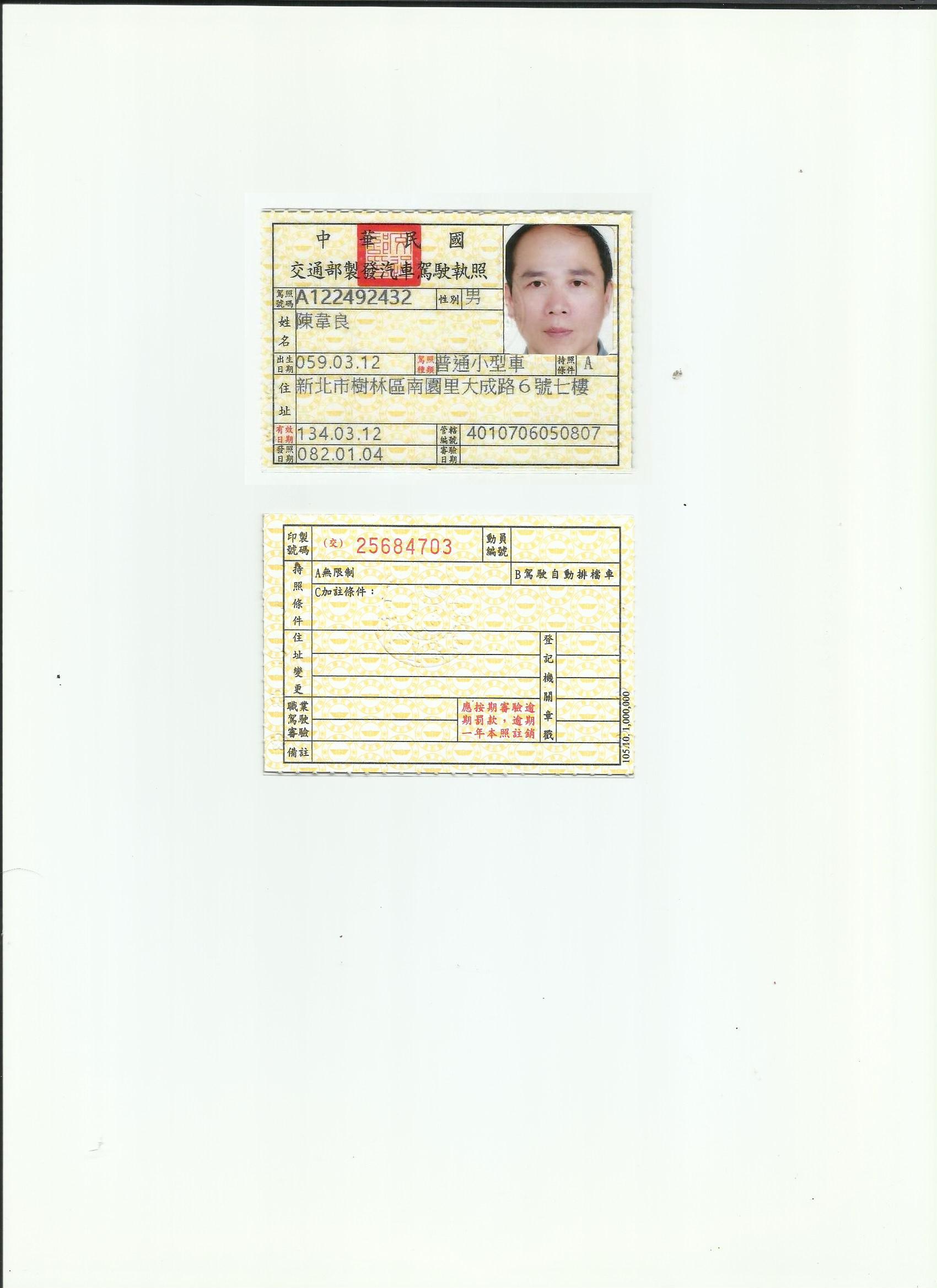 咸陽證件翻譯蓋章 成績單翻譯 戶口薄翻譯 駕照翻譯 臺灣地區駕照翻譯模版