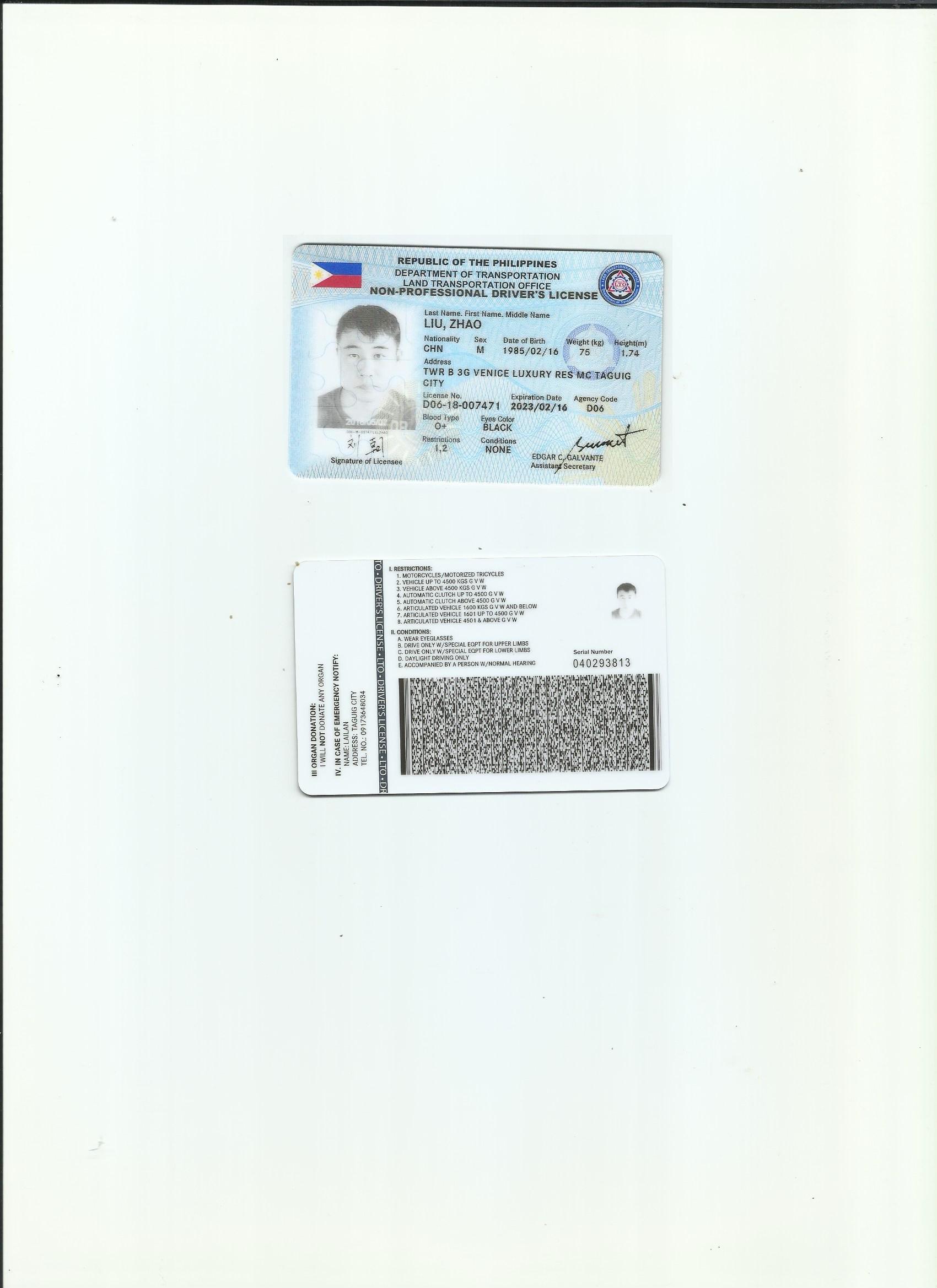 咸陽證件翻譯蓋章 成績單翻譯 戶口薄翻譯 駕照翻譯 菲律賓駕照翻譯模版