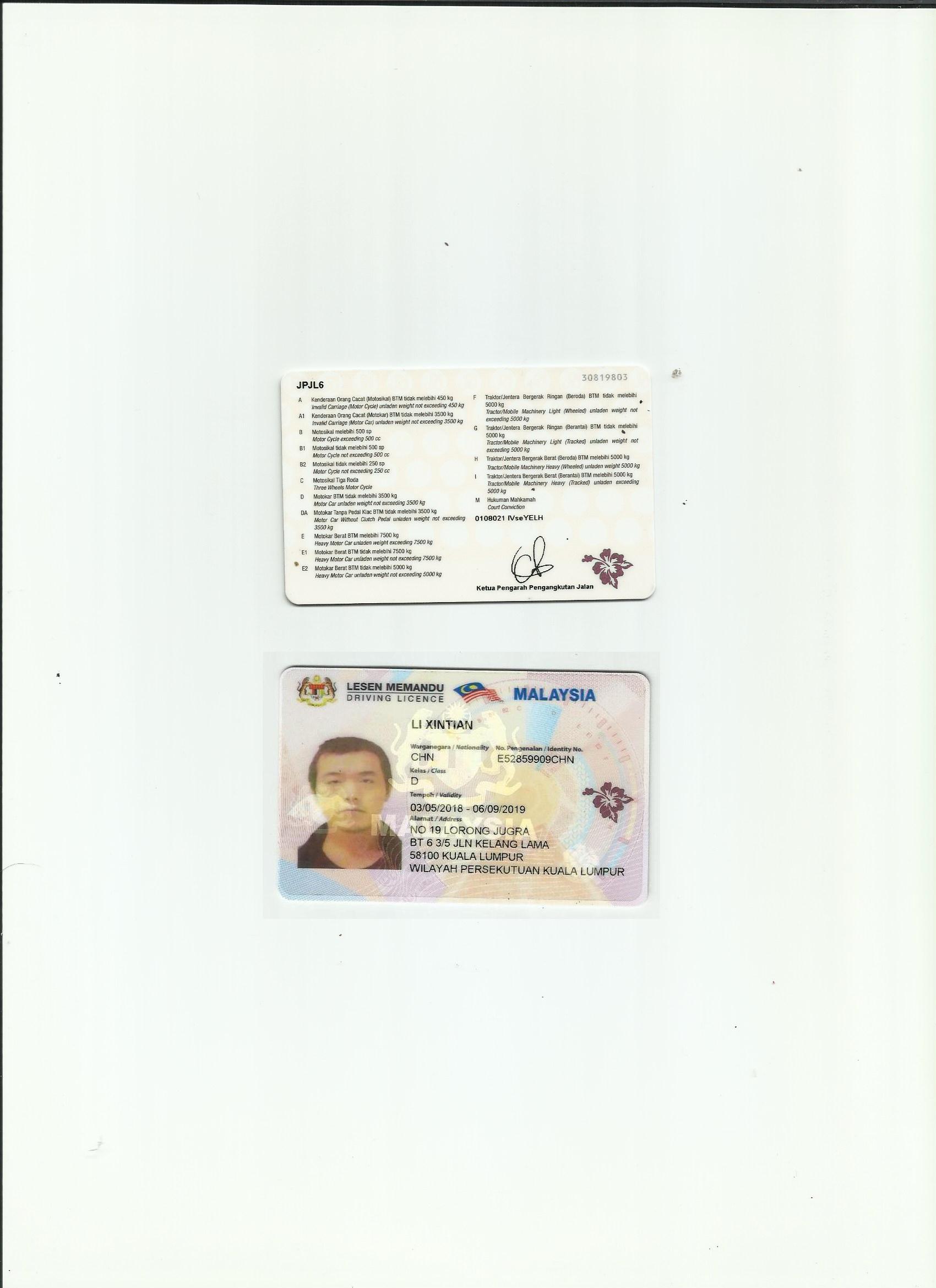 馬來西亞駕照翻譯模版 咸陽翻譯 政府指定咸陽翻譯 公安 車管所