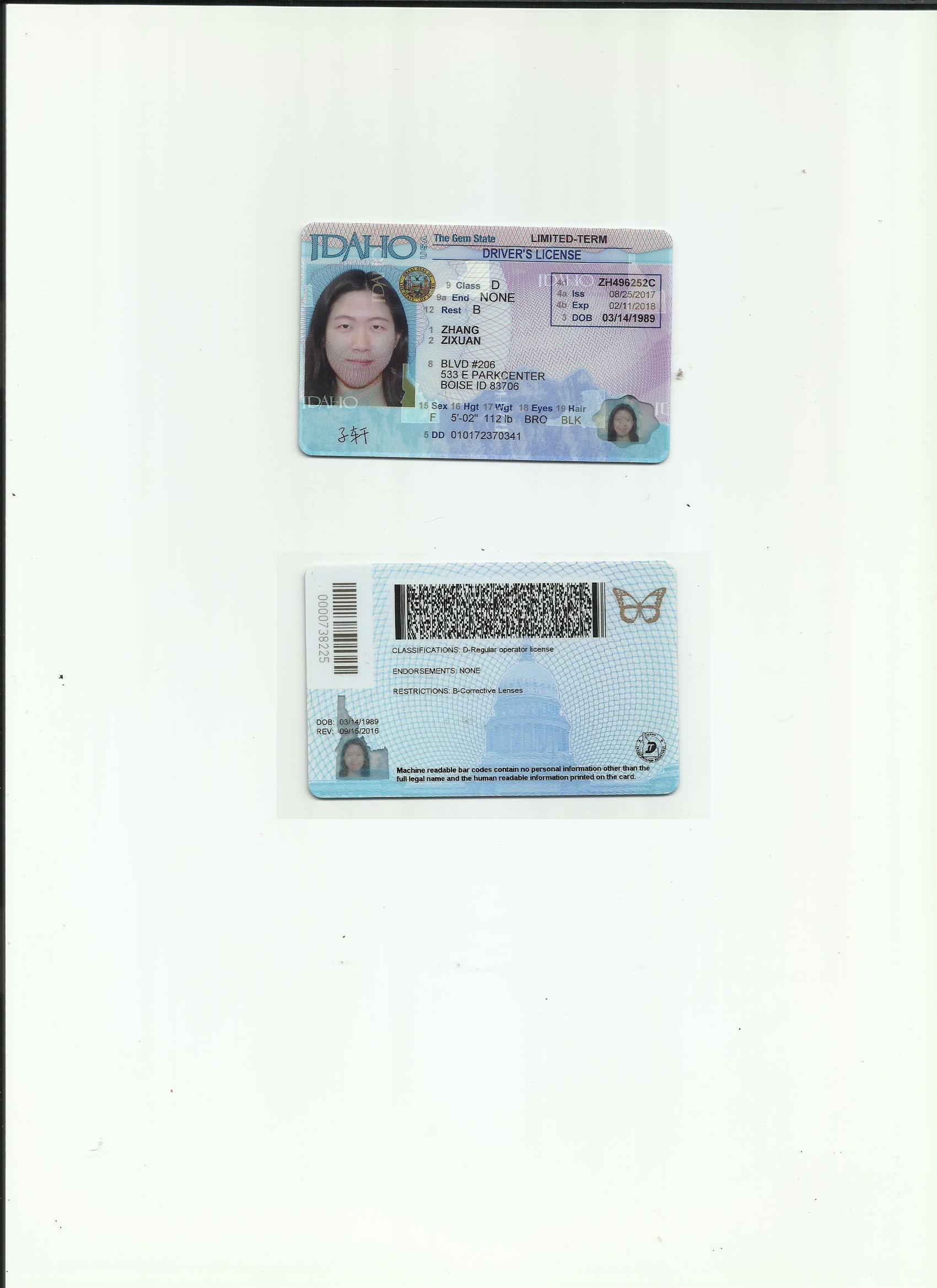 美國愛達荷州駕照翻譯模版 咸陽翻譯 政府指定咸陽翻譯 公安 車管所