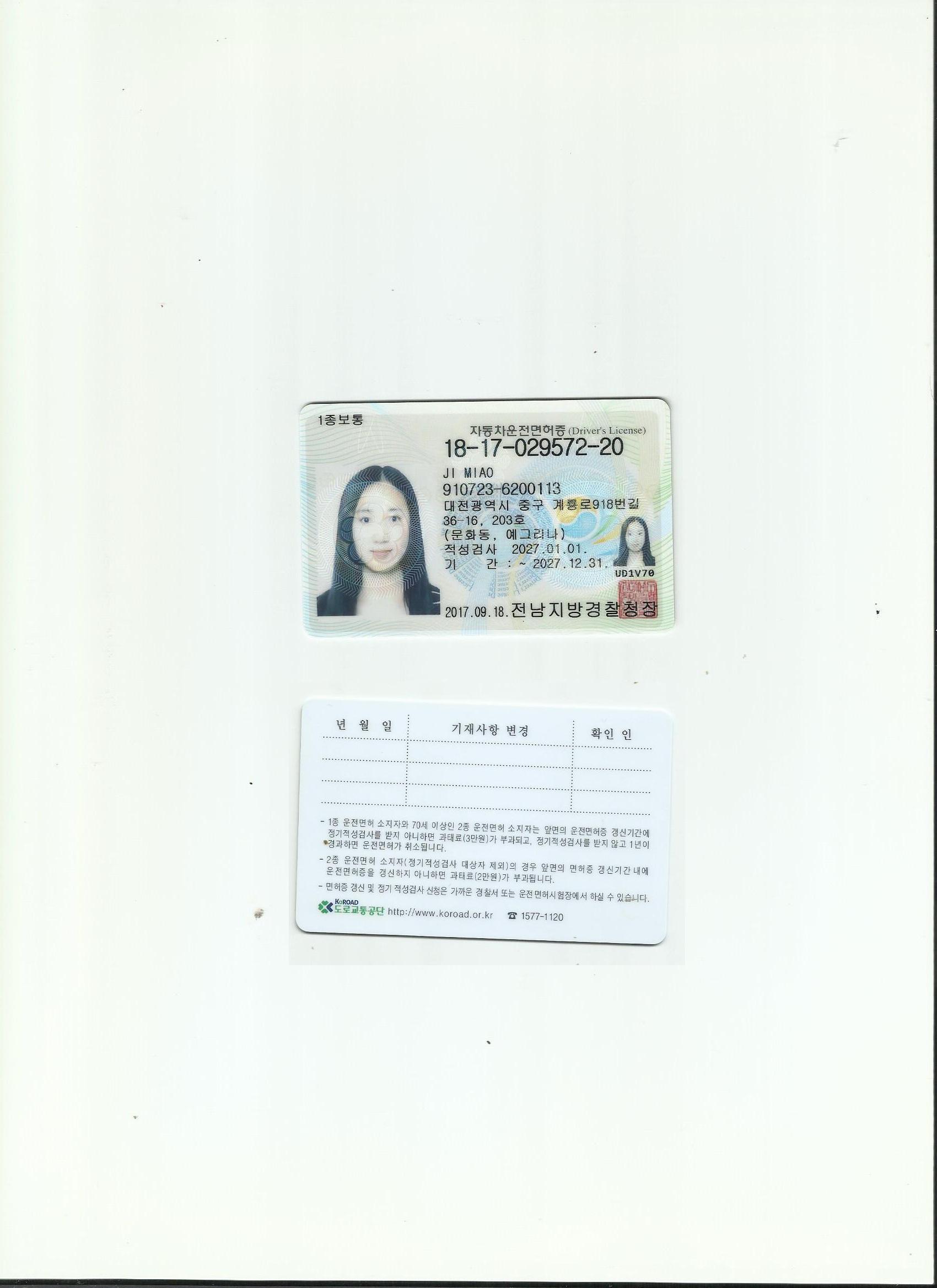 韓國駕照翻譯模版 咸陽翻譯 政府指定咸陽翻譯 公安 車管所