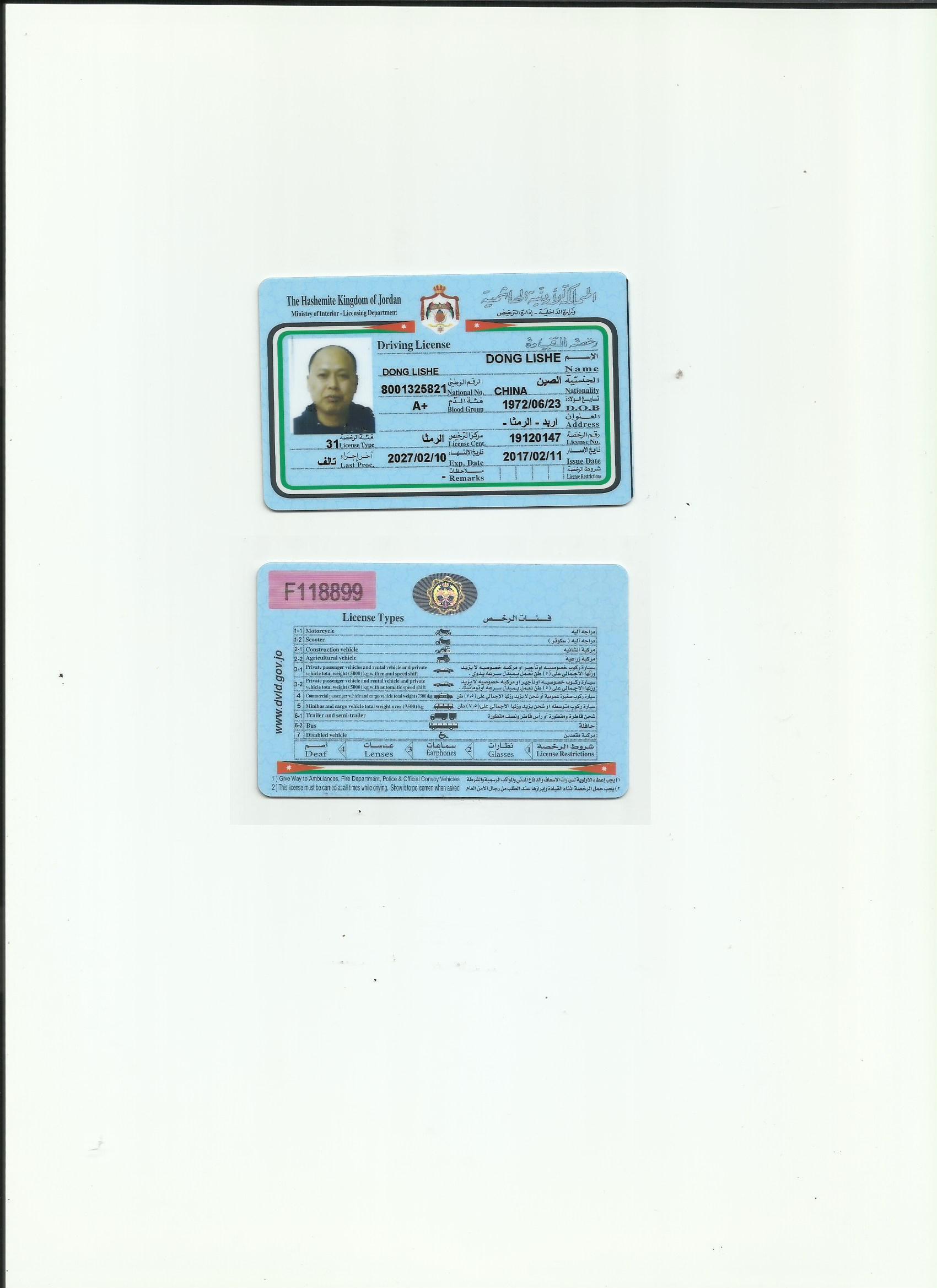 約旦駕照翻譯模版-咸陽車管所駕照翻譯-找阿博爾翻譯-方便快捷、更加專業(yè)