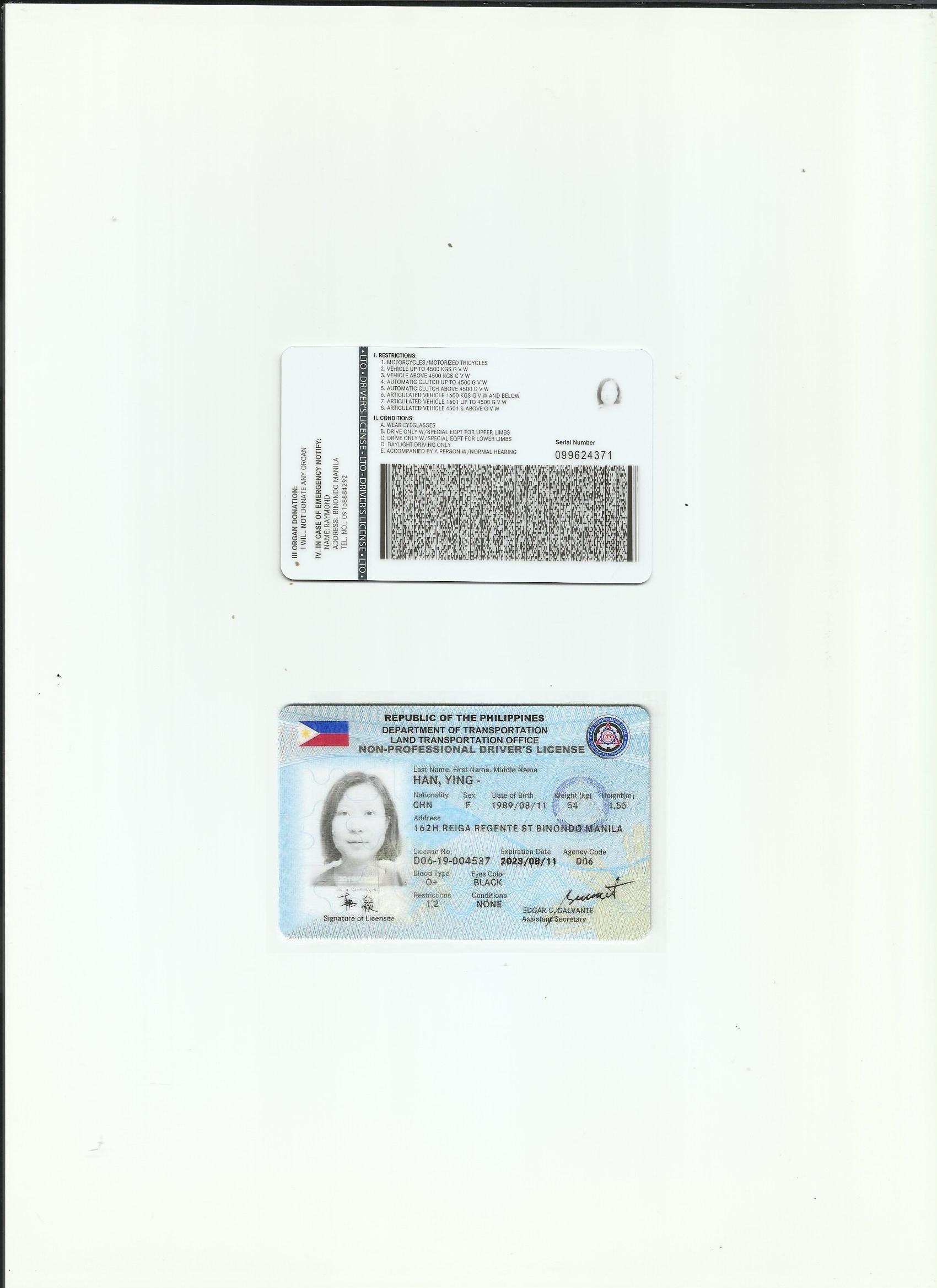 咸陽證件翻譯蓋章 成績單翻譯 戶口薄翻譯 駕照翻譯 菲律賓駕照翻譯模版