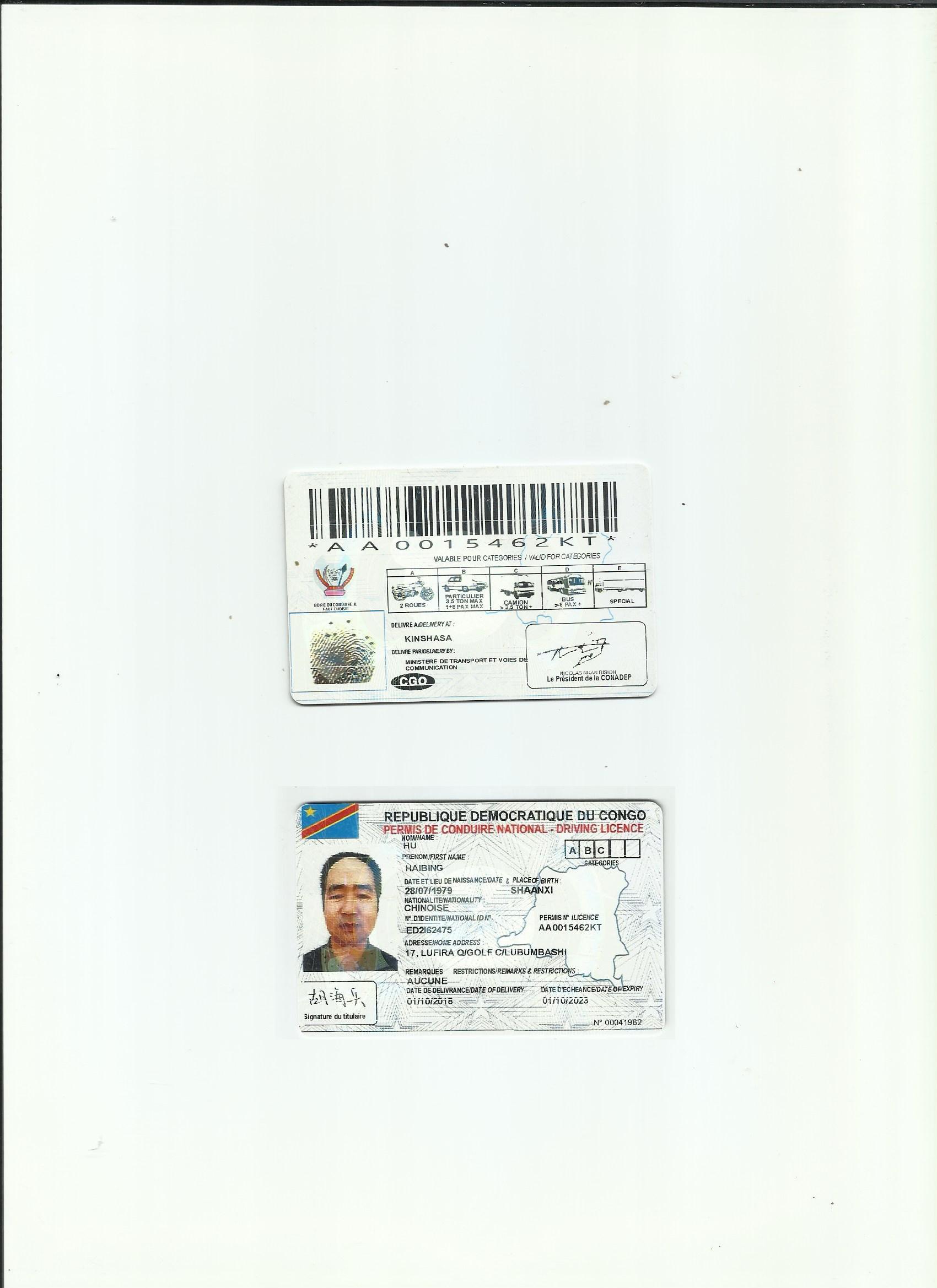 咸陽專業國外駕照翻譯公司 方便國內駕照換證 資質備案的駕照翻譯 剛果金駕照翻譯模版